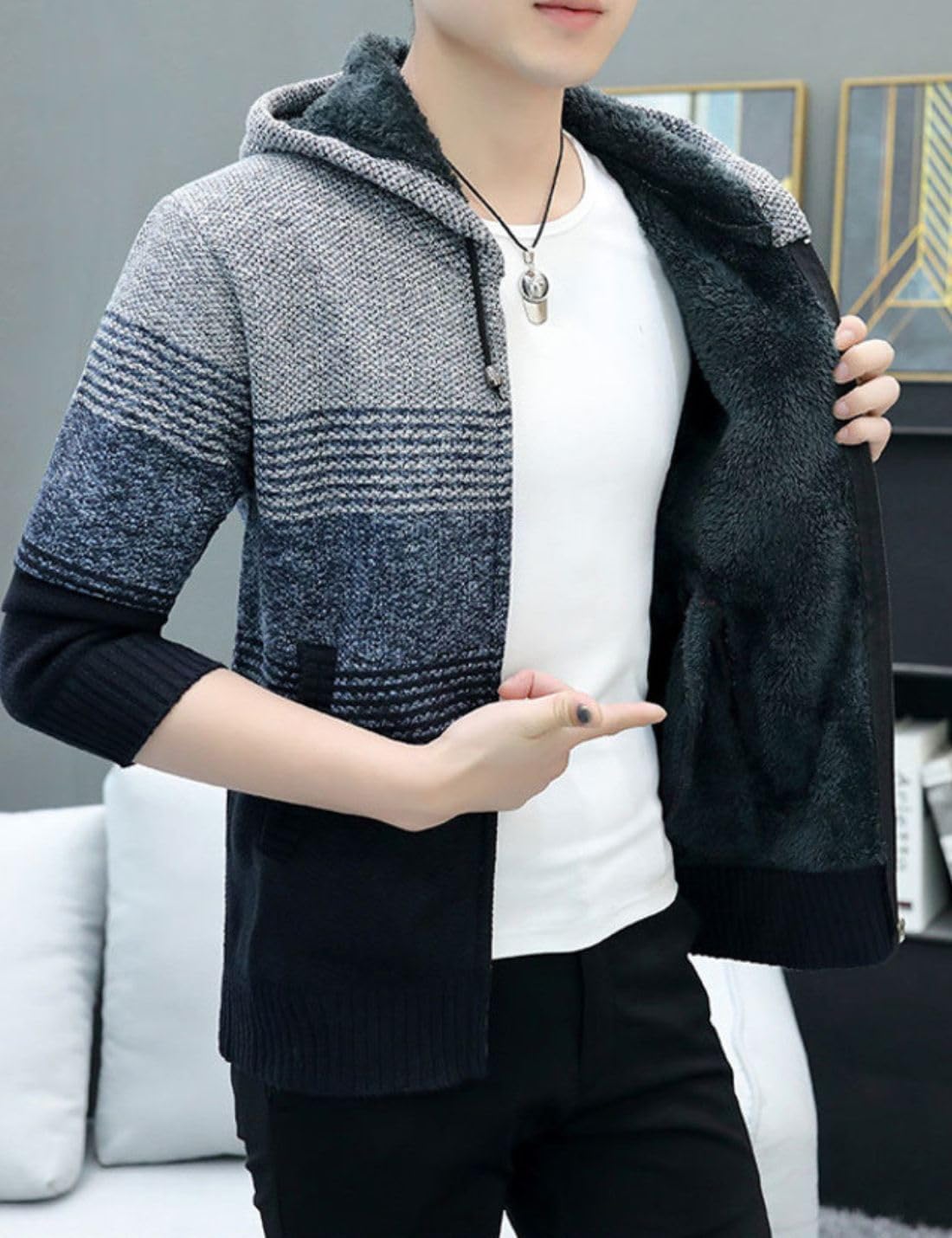 Kinkia Men’s Zip Up Hoodies Casual Long Sleeve Full Zipper Sherpa Fleece Lined Knit Cardigan Sweater Jacket with Pockets