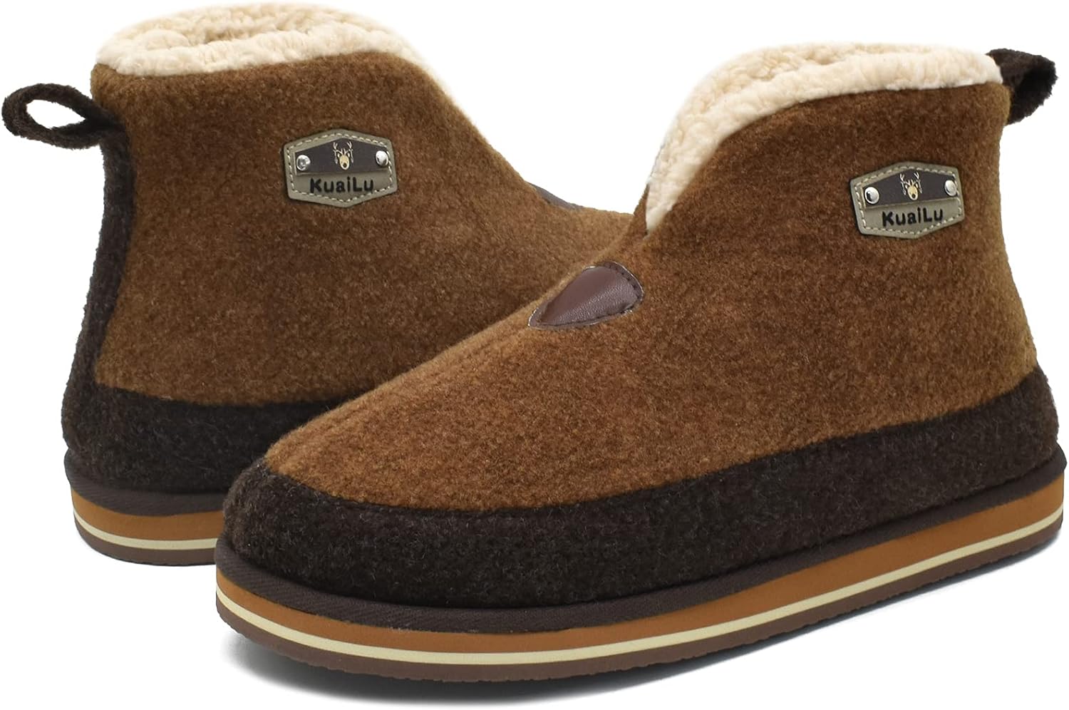 KuaiLu Mens Winter Slippers Memory Foam Slipper Boots for Men Cozy Felt Wool House Booties with Warm Sherpa Plush Lining Non-slip Rubber Sole Indoor Outdoor 7-14