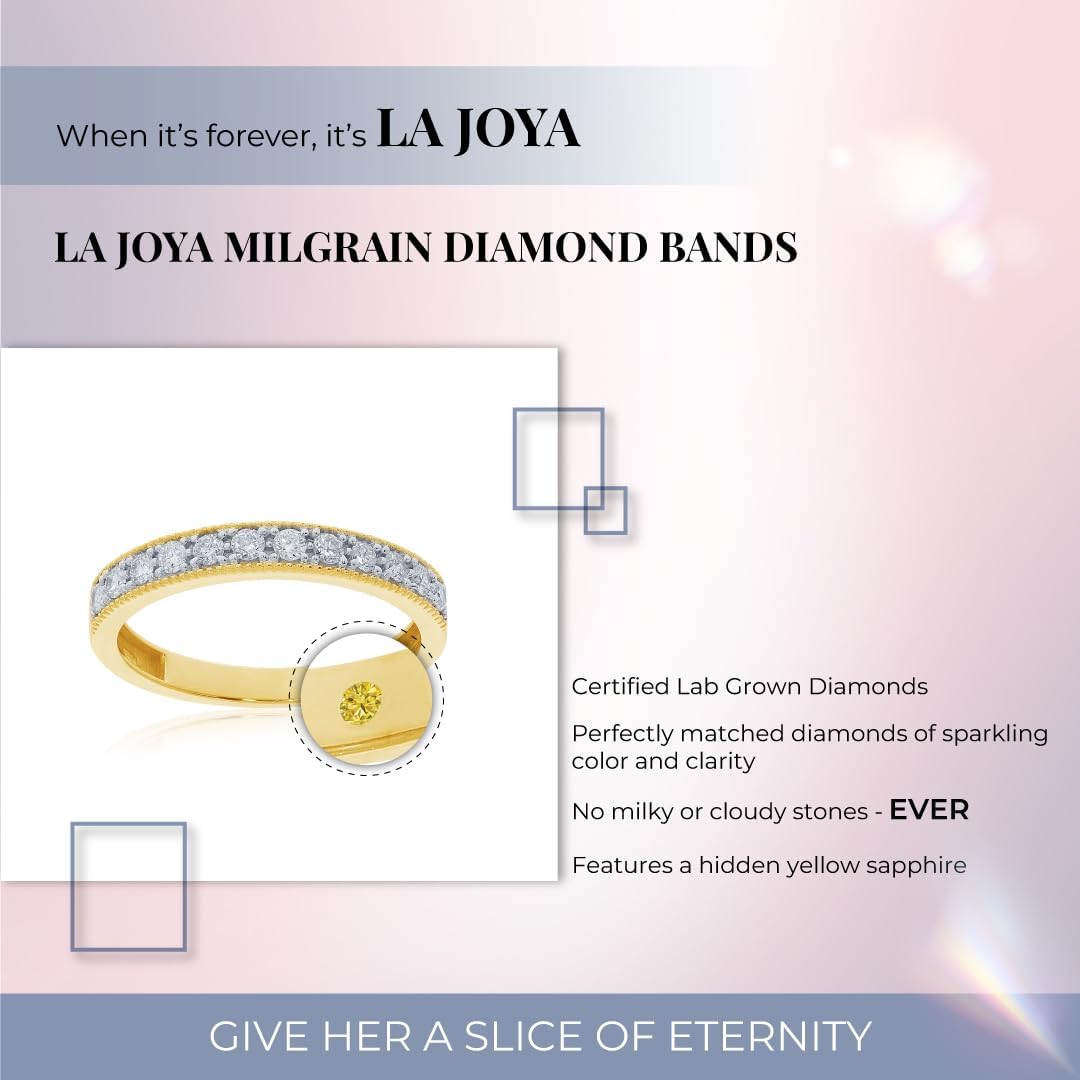 Lab Grown Diamond Wedding Bands for Women | 10K Yellow, White and Rose Gold Certified 1/10-1/2 Carat Milgrain Diamond Anniversary Bands, Promise Rings and Stackable Bands