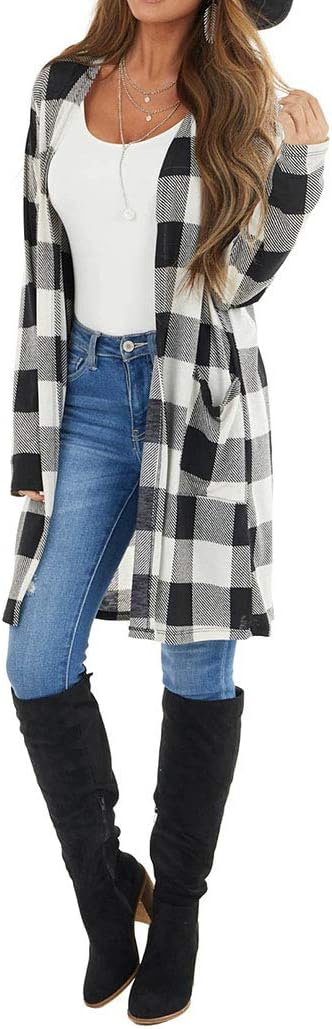 Women Plaid Check Cardigans Open Front Long Sleeve Cardigan Outwear