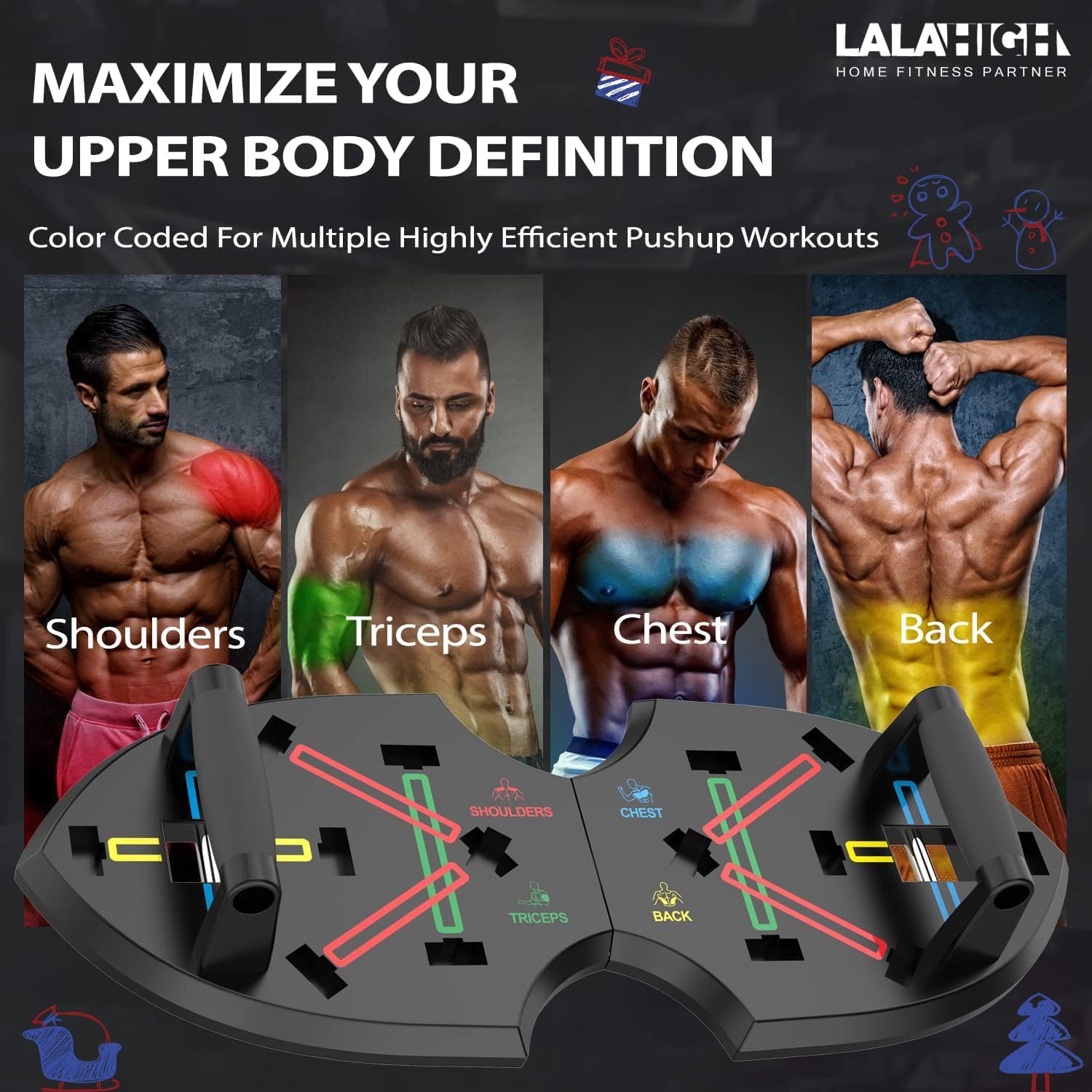 LALAHIGH Ultimate Home Workout Equiptment【Limited Christmas Edition】- Upgraded Portable Home Gym with 65 Gym Accessories: Push up Board, Pilate Bar Ab Roller Wheel, and Resistance Bands – Christmas