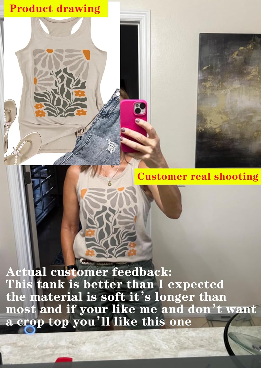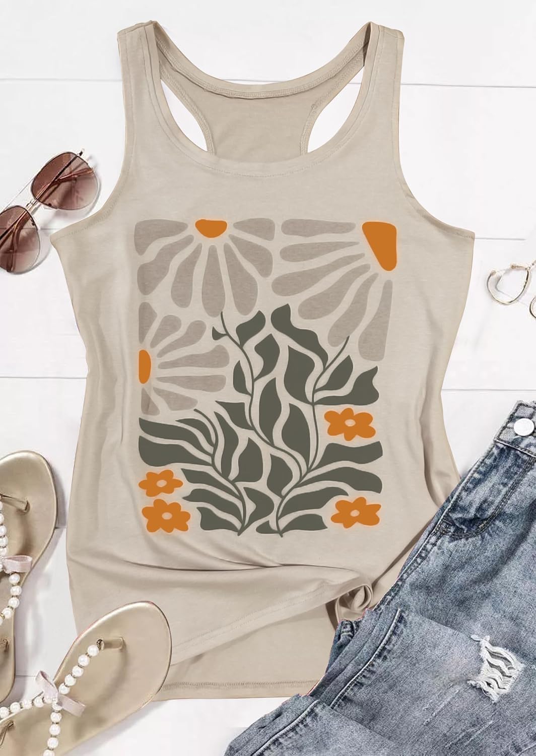 LANMERTREE Womens Vintage Graphic Racerback Tank Tops Floral Graphic Sleeveless Summer Basic Casual Loose Muscle Vest