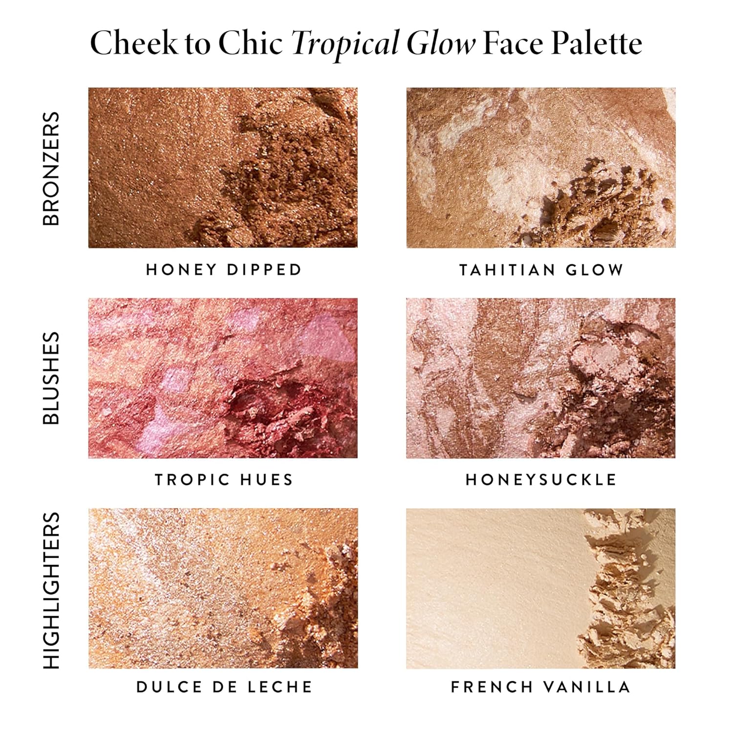 CHEEK TO CHIC TROPICAL GLOW 6PC FACE PALETTE: Time to get cheeky! Laura Geller’s incredible makeup palette includes 6 bestselling face products to add a flush, contour with precision and create a luminous glow!