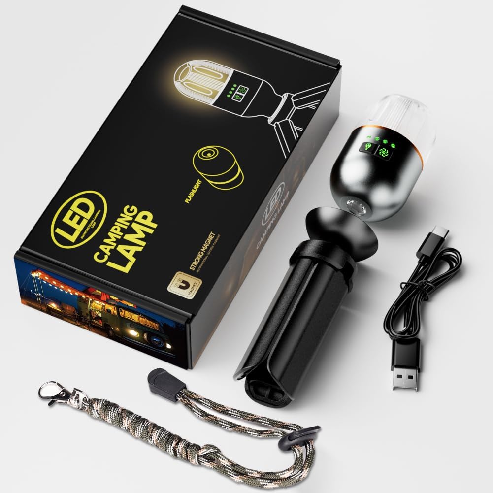 ⛺ Hook & Detachable Magnetic Base – Equipped with a built-in handle for easy carrying and a recessed hook for hanging upside down. The lantern also features a magnetic base on top, offering flexible placement options after removing the stand.