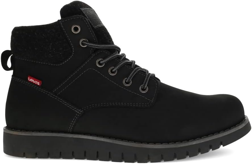 Tumbled leather uppers, wool accents, and iconic Levi’s branding come together to elevate your laid-back, casual look. These men’s boots are perfect for any day, from work to play, as they give long-lasting comfort without sacrificing style. The extra padding in the collar and tongue keeps your feet warm and relaxed, while the durable rubber outsoles add traction and support. These men’s shoes have a classic lace-up design complete with a pull tab, so they’re easy to pull on and slide off. Pair these men’s shoes with any outfit from jeans to khakis to polish off your casual look and put your best foot forward.
