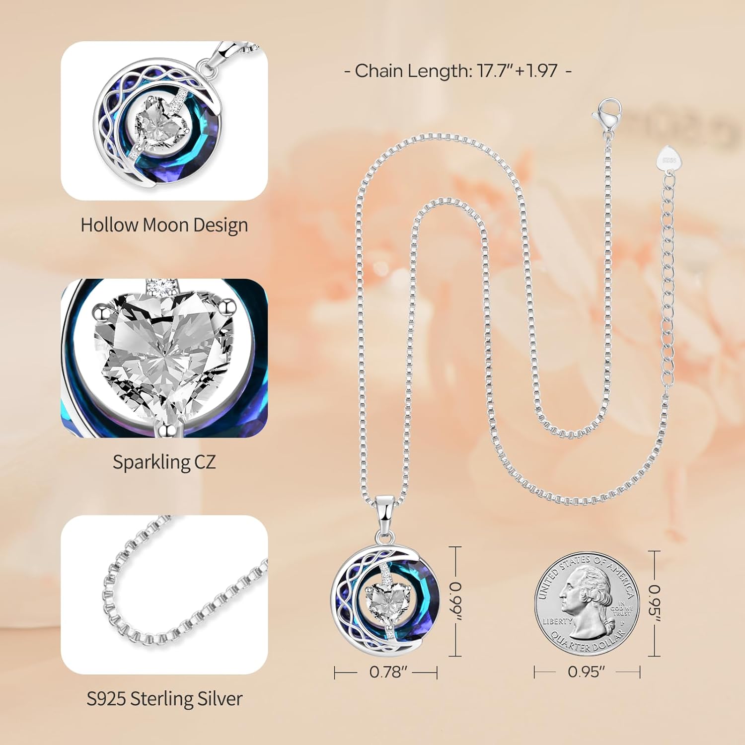 LIANYU Necklace for Women Sapphire Jewelry for Women Gifts for Wife Birthday Anniversary Girlfriend Mom