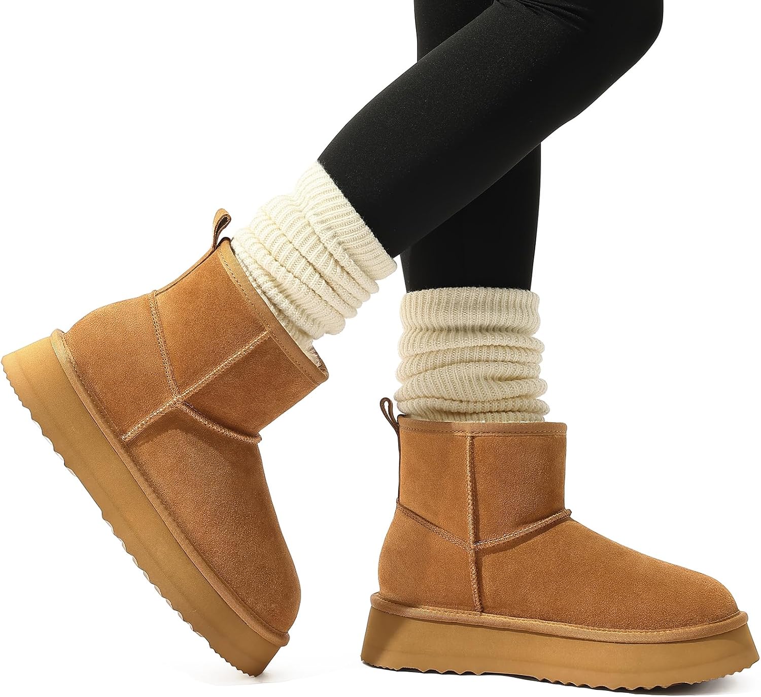 Litfun Platform Snow Boots for Women Winter Genuine Suede Ankle Mini Boots with Fur Lined