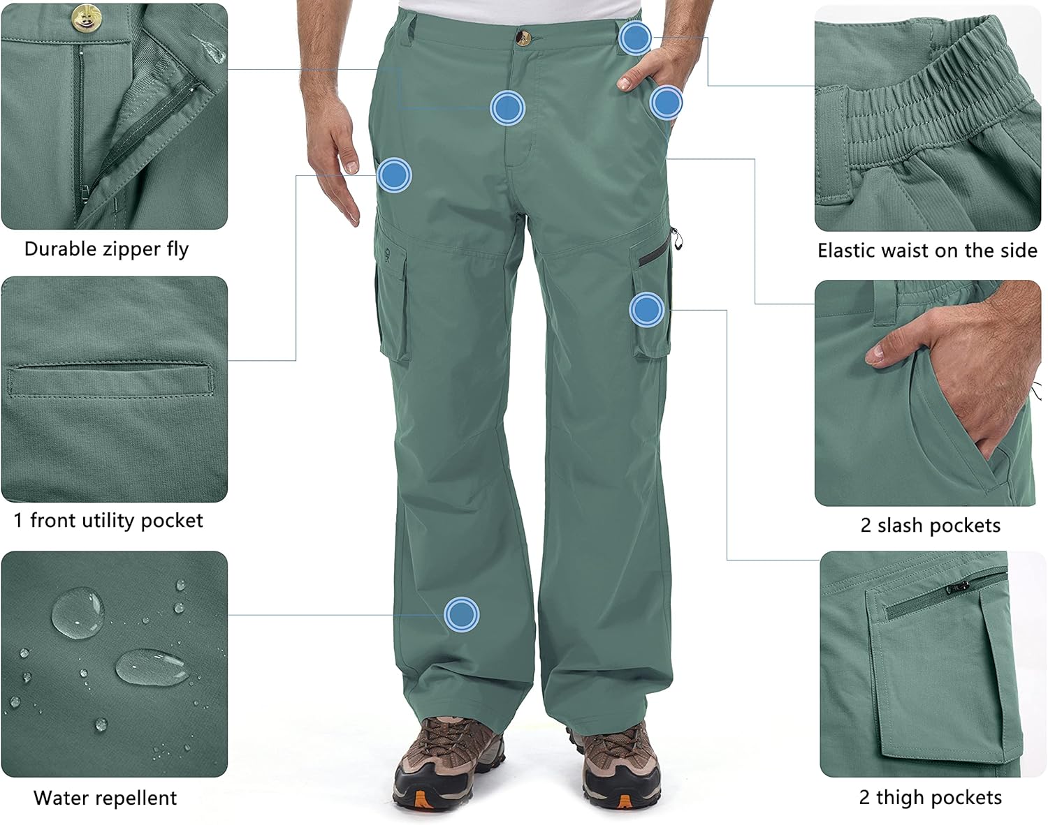 Little Donkey Andy Men’s Quick Dry UPF 50+ Cargo Pants, Stretch Lightweight Outdoor Hiking Pants