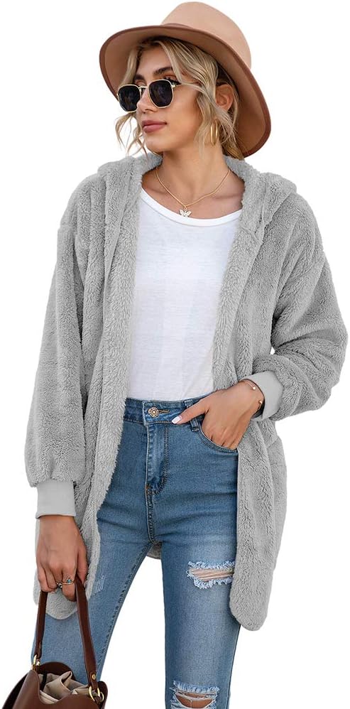 LONGYUAN Women’s Fleece Jacket Fuzzy Hooded Winter Casual Coats 2024 Cardigan Sweaters with Pokets