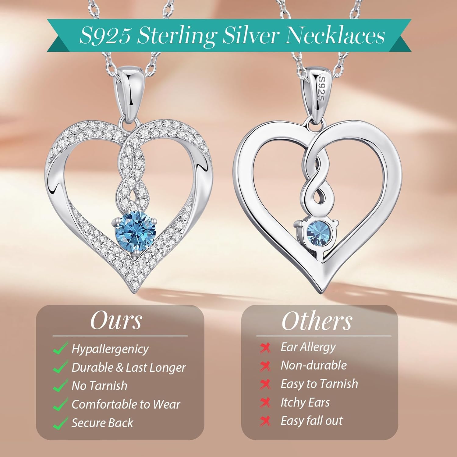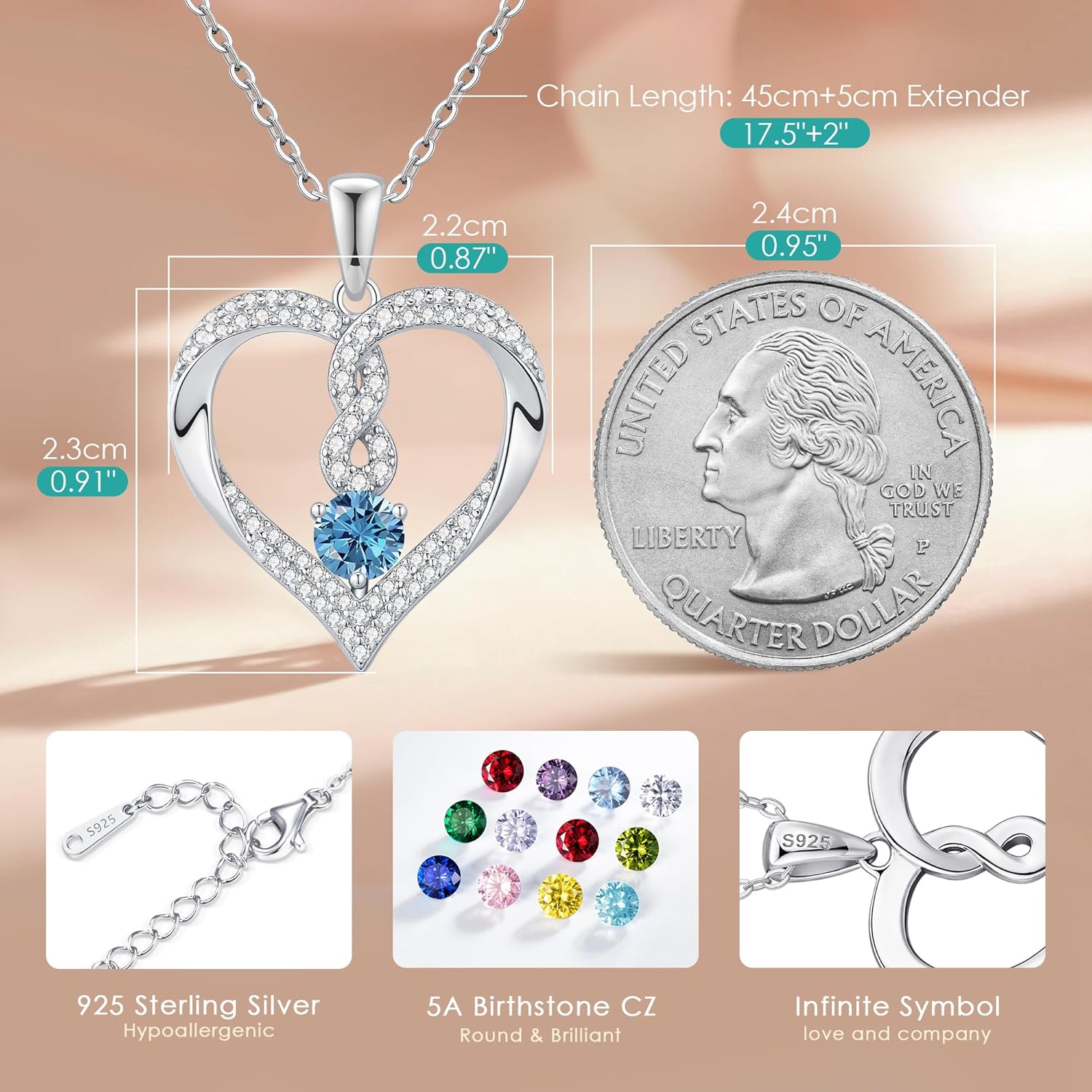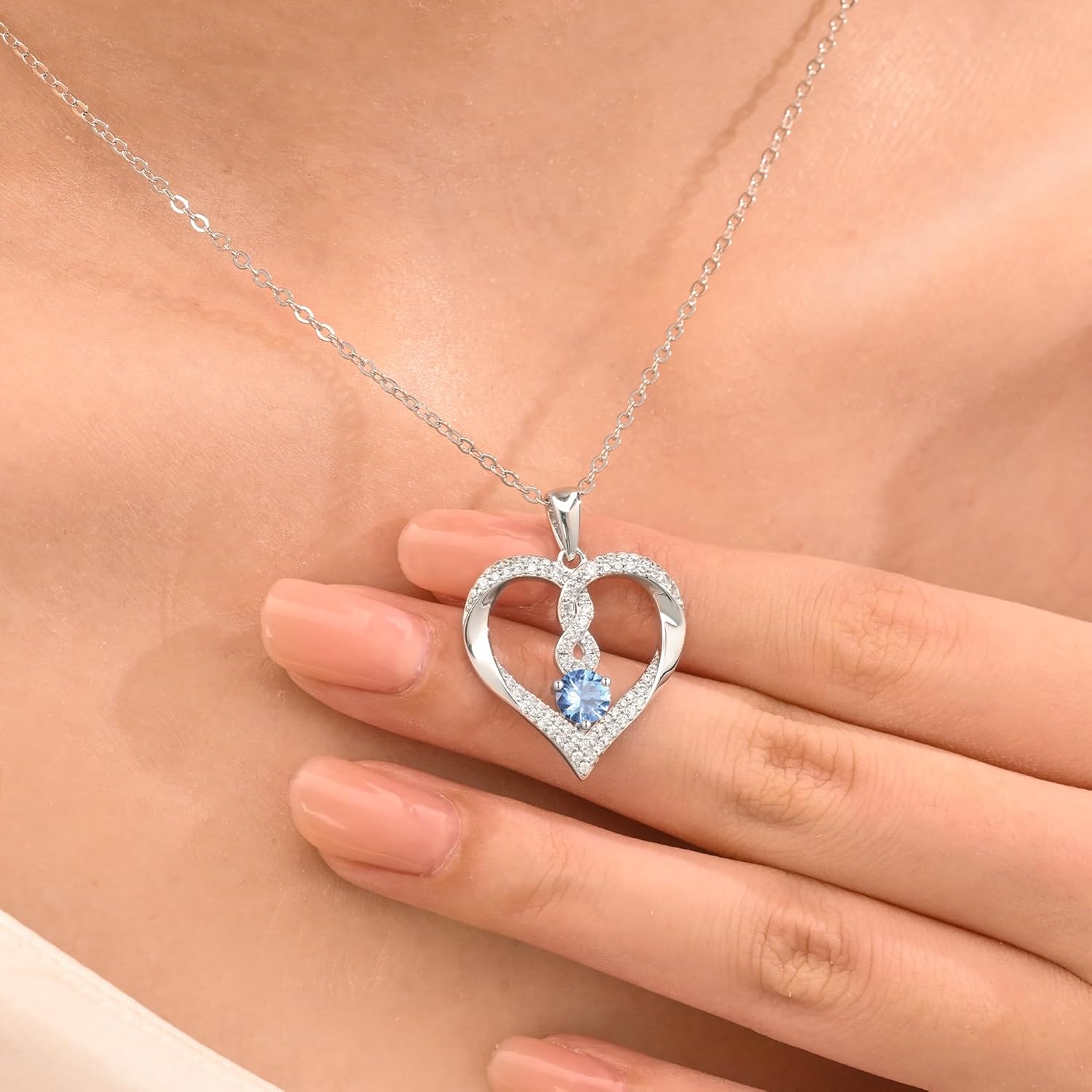LOUISA SECRET Infinity Heart Birthstone Necklaces for Women, 925 Sterling Silver Forever Love Pendant Jewelry for Her, Ideal Gift for Wife, Girlfriend, Mom on Birthday, Anniversary, Mother’s Day Gift