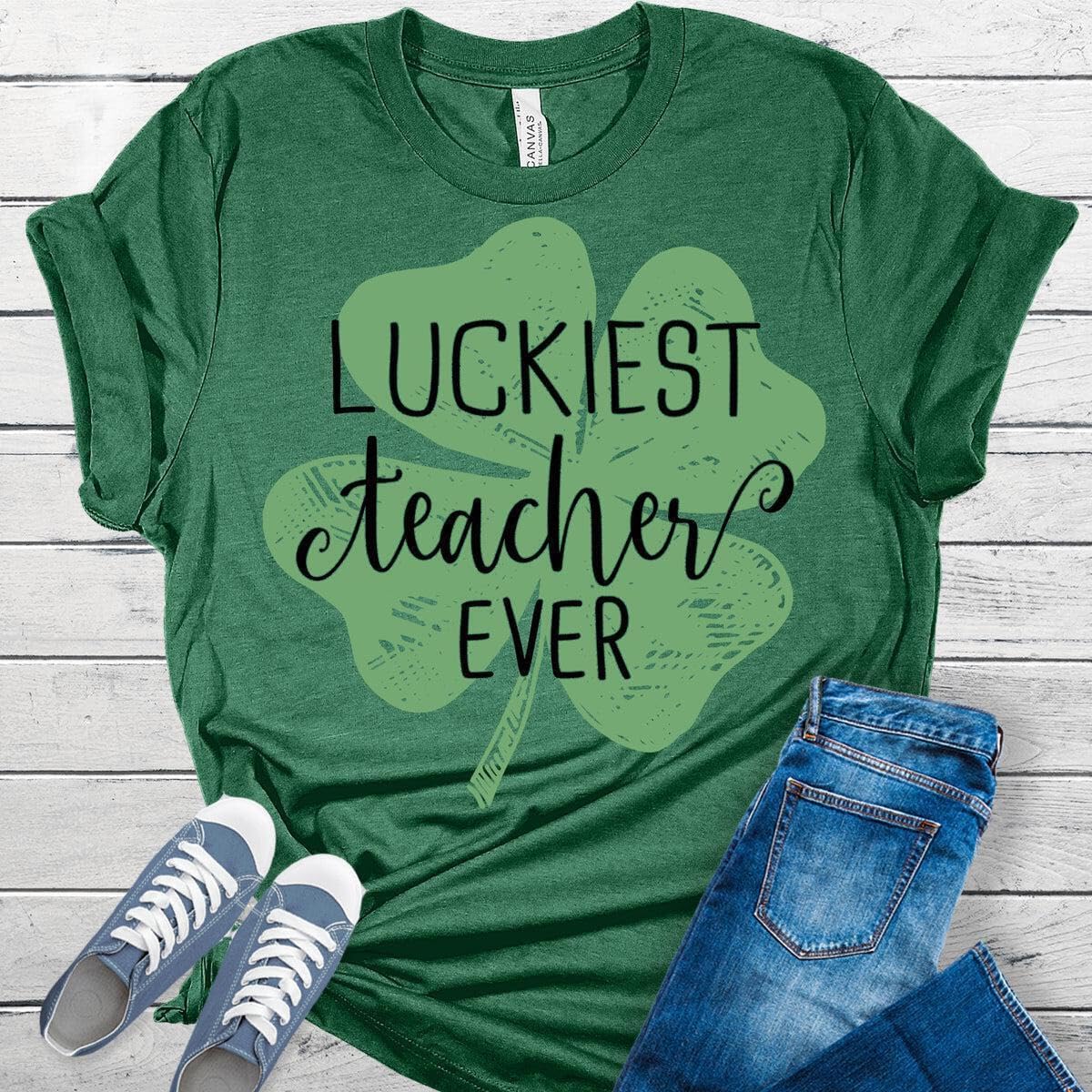 Luckiest Teacher Ever Four Leaf Clover St Patricks Day Teacher Shirt