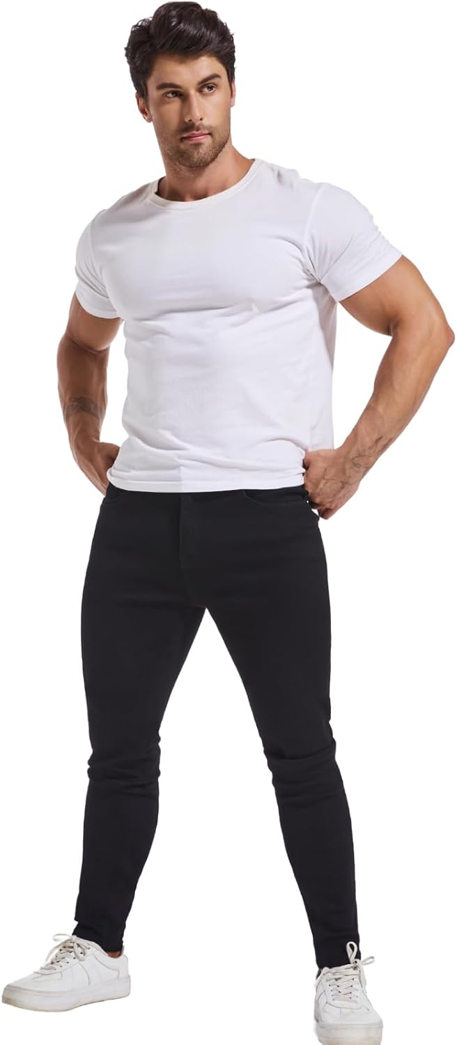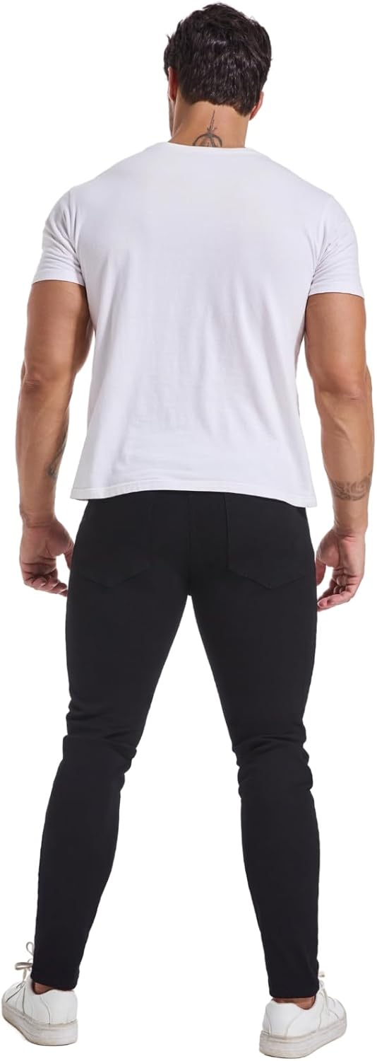LZLER Mens Skinny Jeans Slim Fit Stretch Jeans Tapered Leg Ripped Elastic Waist Jean Denim Pants