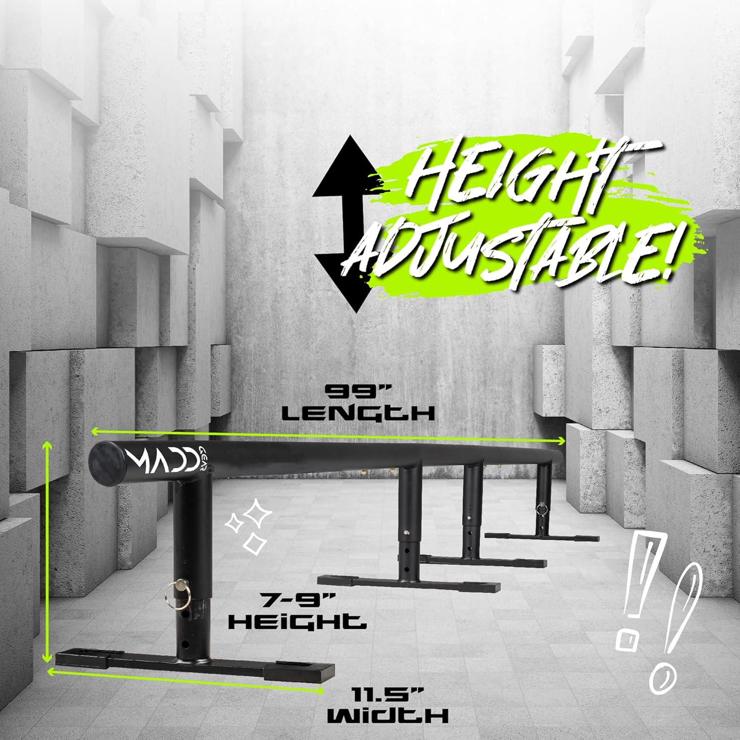 Madd Gear 99″ Long Flat Bar Skate Rail – Heavy Duty Durable Round Skateboard Pro Scooter or Inline Skate – Adjustable Height