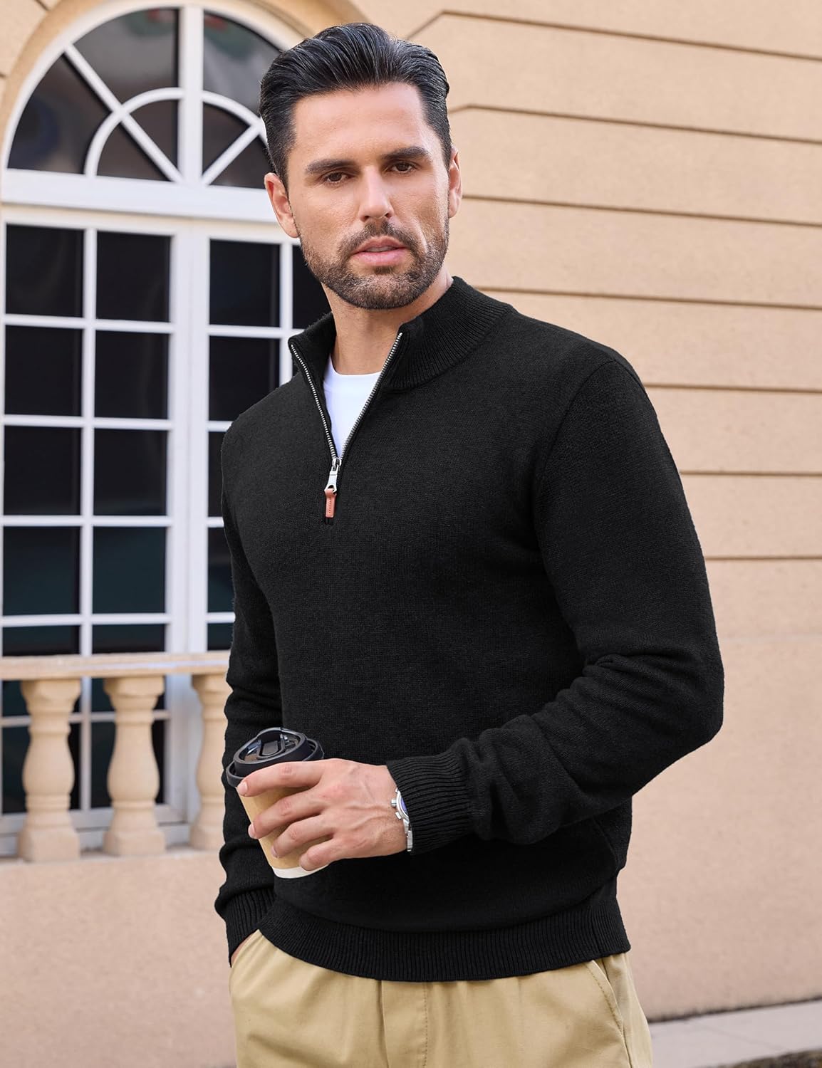 MAGCOMSEN Men’s Quarter Zip Pullover Sweaters Casual Knit Polo Sweaters Fall Winter Sweatshirts