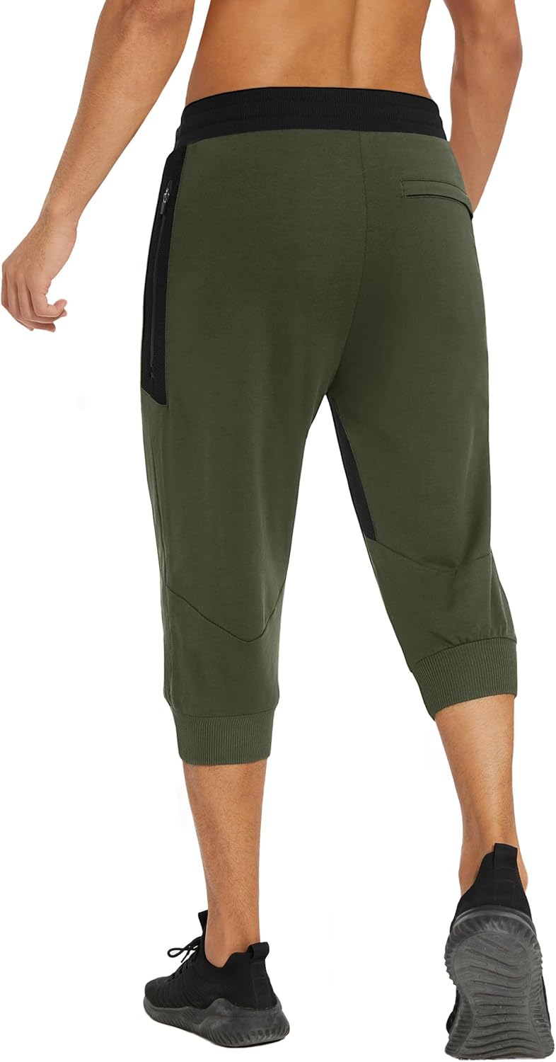 MAGNIVIT Men’s 3/4 Jogger Capri Pants Workout Gym Below Knee Shorts Zipper Pockets Jogger Sweatpant Capris for Men