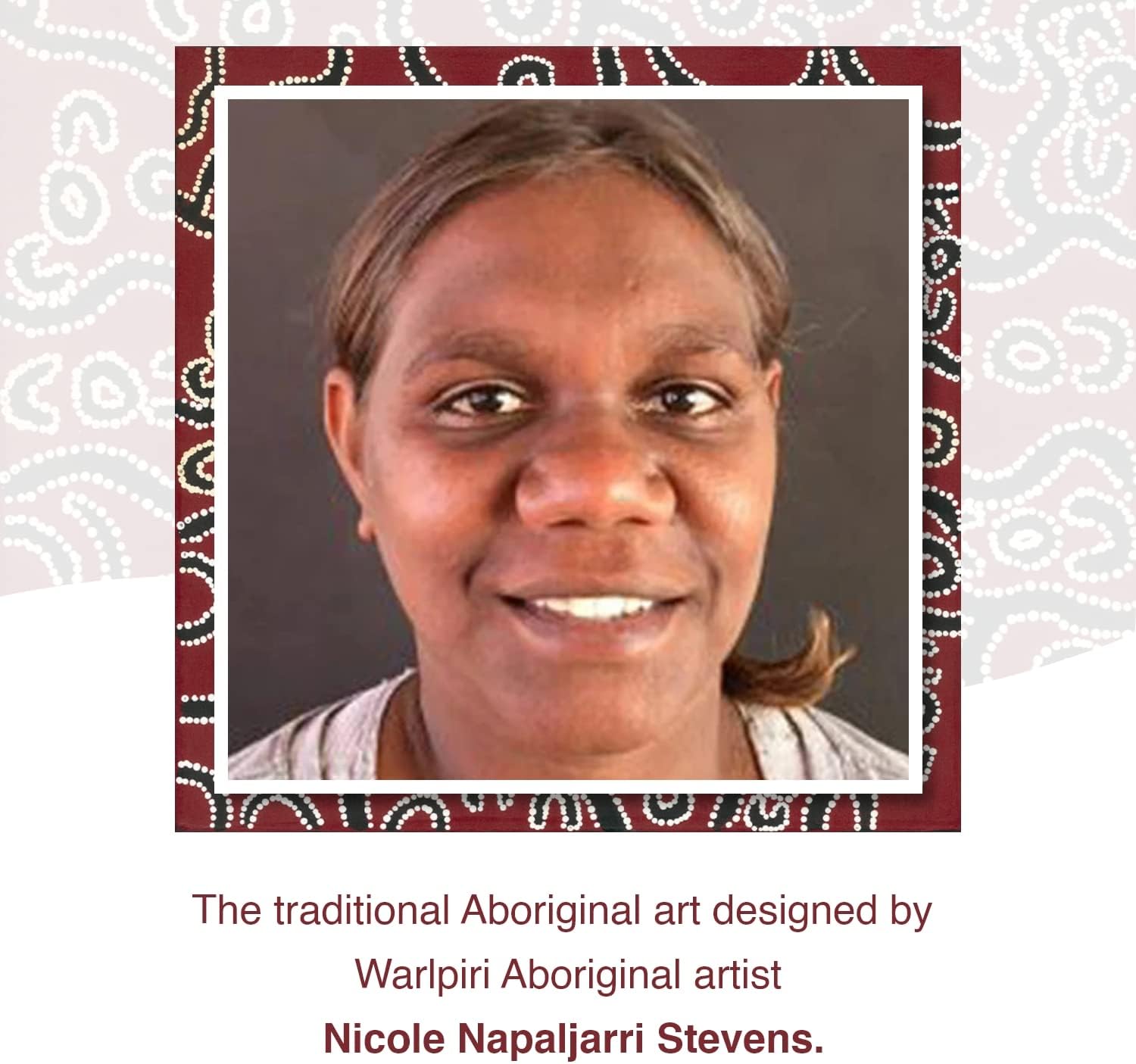 Based on an original painting by young Warlpiri artist, Nicole Napaljarri Stevens, the red bark tree design depicts an important watercourse in the Warlpiri homelands called Mikanji.