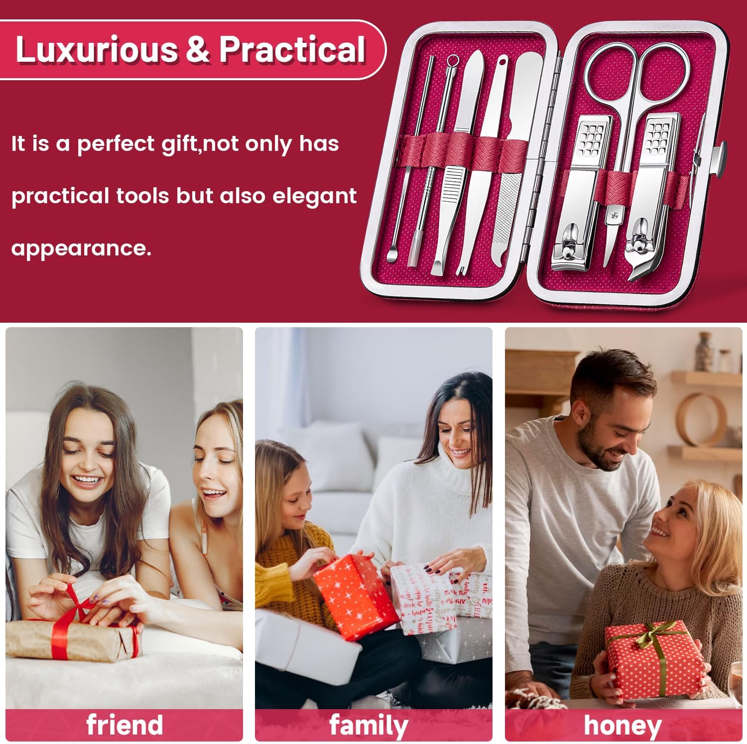 Manicure Kit Nail Clippers Personal Care 8 in 1 Professional Pedicure Set Stainless Steel Grooming Kit Fathers Gift for Women Friend Parent Nail Care Tools with Travel Case Red