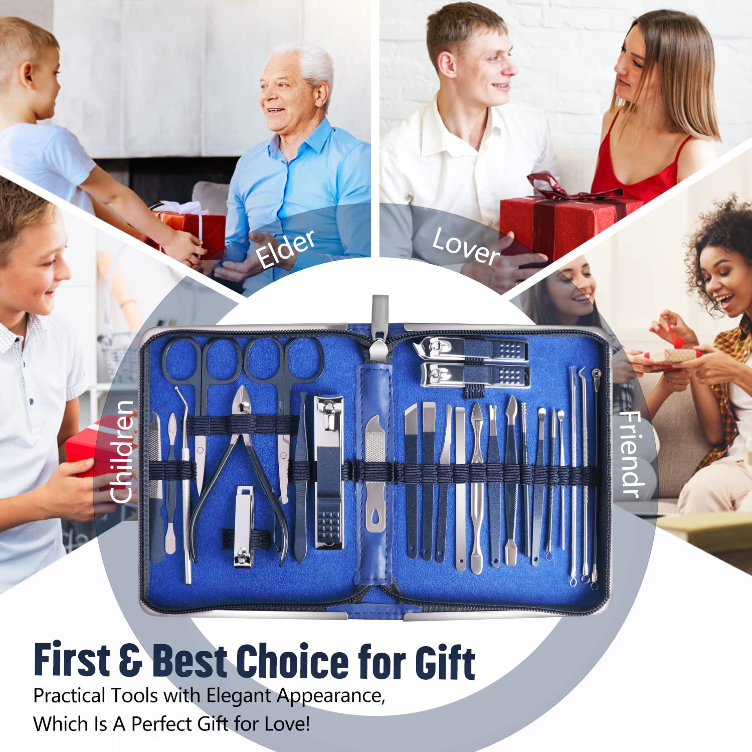Manicure Set Men Women Nail Grooming Kit, Professional Manicure Kit Pedicure Kit 26 In 1 Nail Clipper Set Nail Care Tools Kit With Travel Case- Blue