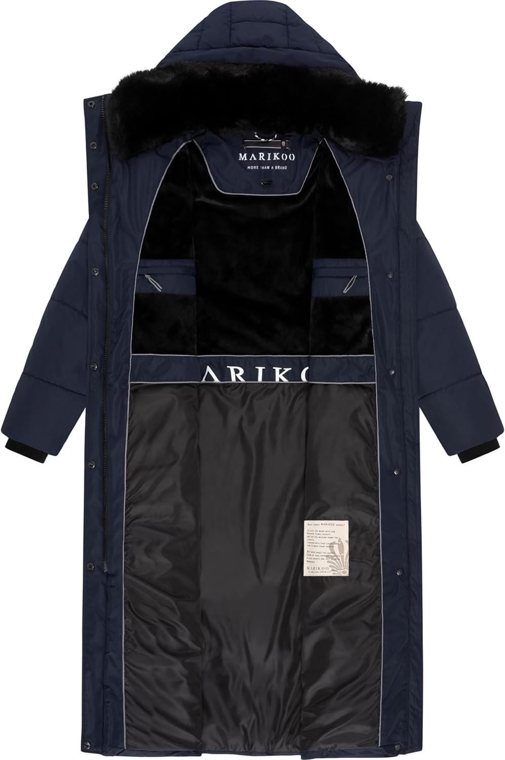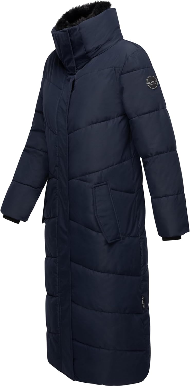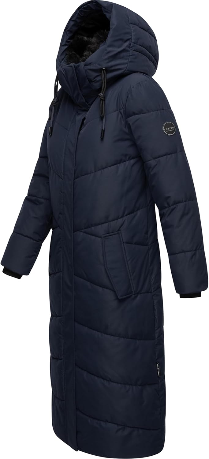 Marikoo Extra Long Quilted Winter Jacket for Women with Detachable Hood | Puffy Coat in Calf-Length | Hingucker XIV XS-5XL
