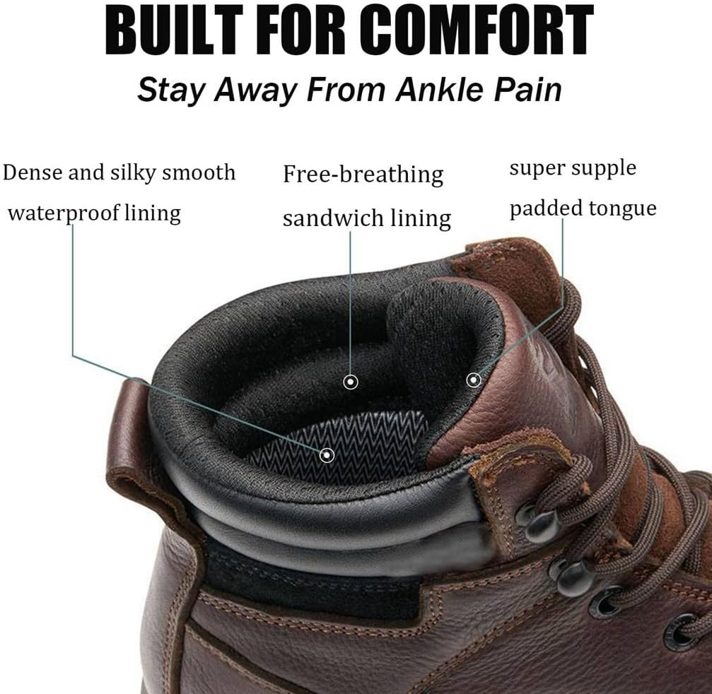 Men 6 Inch Waterproof Soft Toe Work Boots – Moc Toe,Construction Industrial Safety Leather Work Shoes,Oil/Slip Resistant Comfortable Wedge Outsole,EH Rated,Goodyear Welt,Lace Up,Heavy Duty