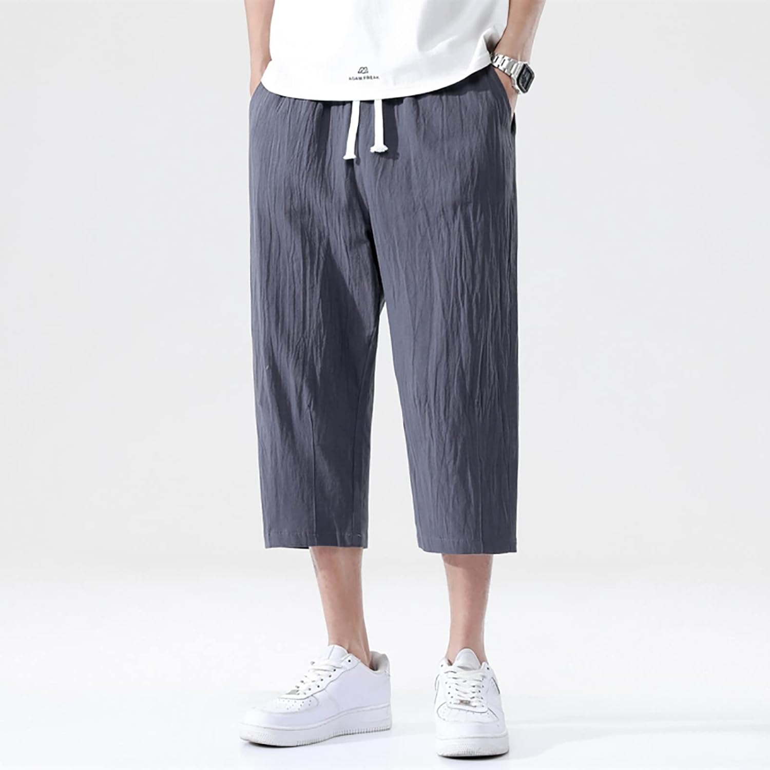 Men’s Capri Pants Lightweight Loose 3/4 Shorts Drawstring Elastic Waist Baggy Wide Leg Casual Beach Yoga Flat Front