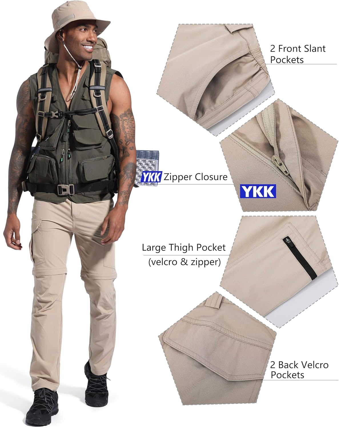 Men’s Convertible Hiking Pants Zip Off Lightweight Quick Dry Fishing Camping Travel Safari Outdoor Cargo Pants