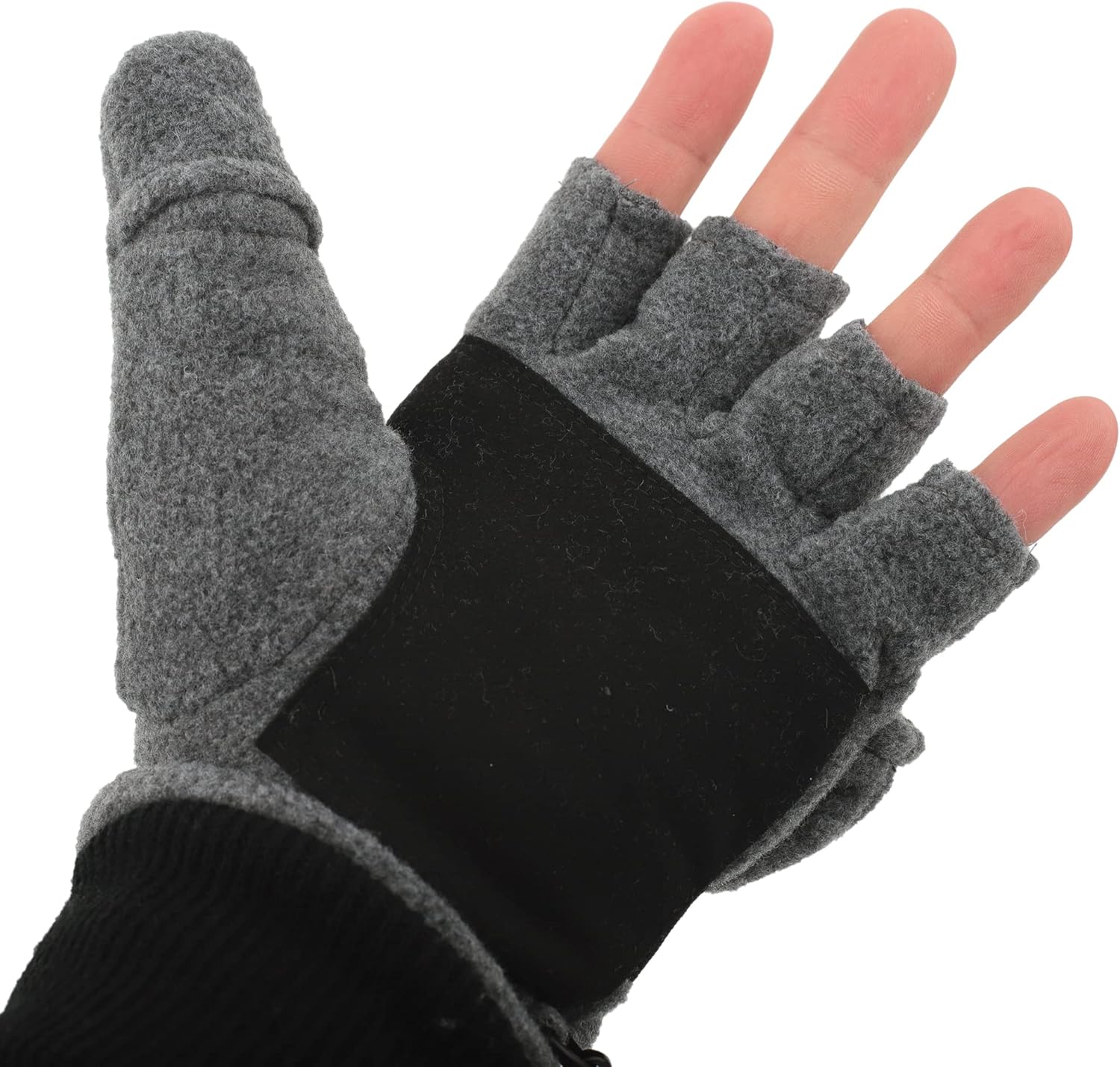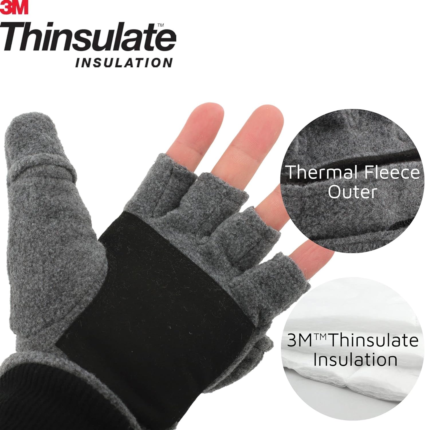 Mens Fleece Mitten Gloves 3M Thinsulate Thermal Convertible Mittens Cold Weather Half Finger Gloves