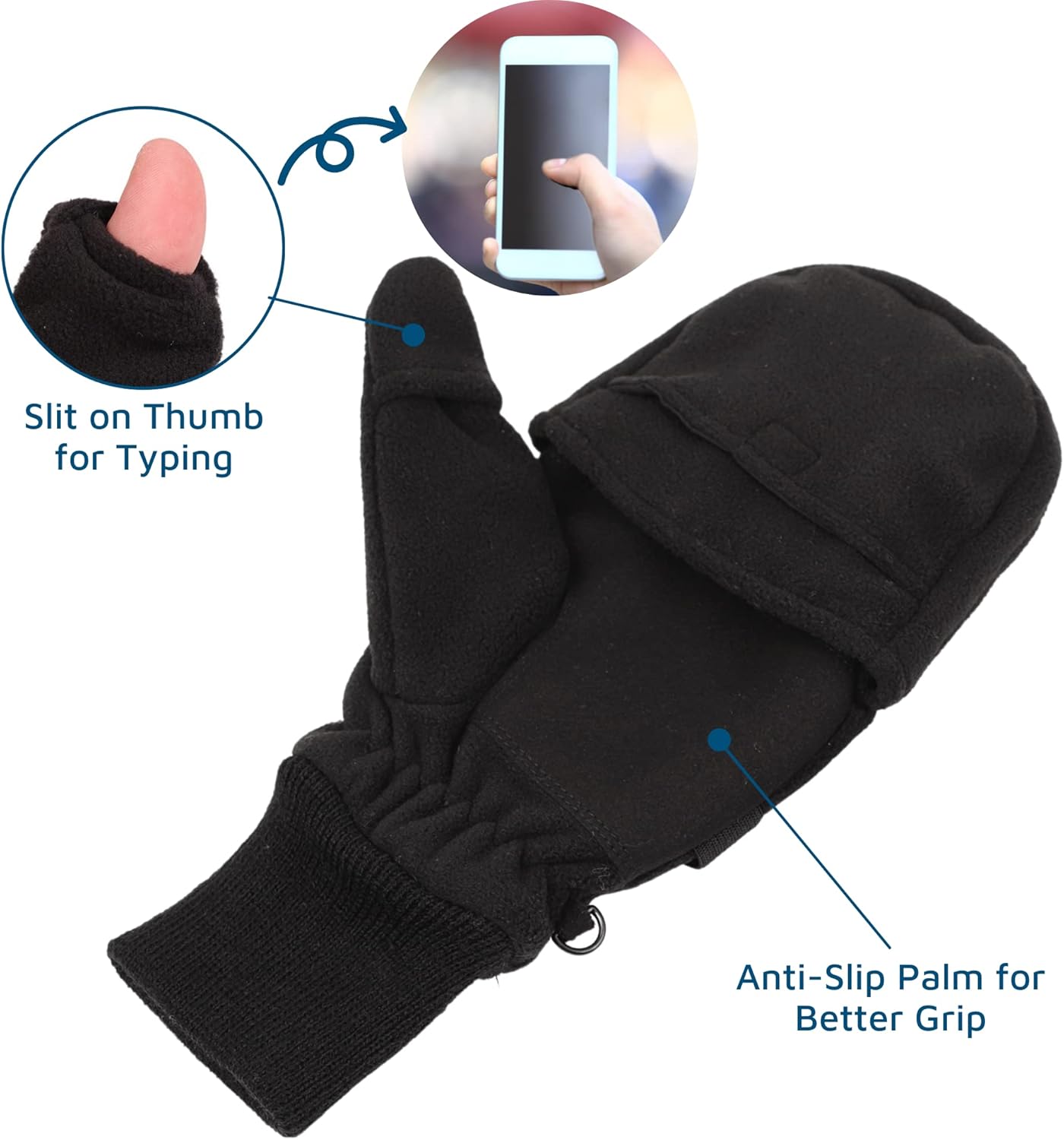 Mens Fleece Mitten Gloves Thermal Convertible Mitten w/Flip Thumb Cold Weather Gloves for Hunting Hiking Outdoors