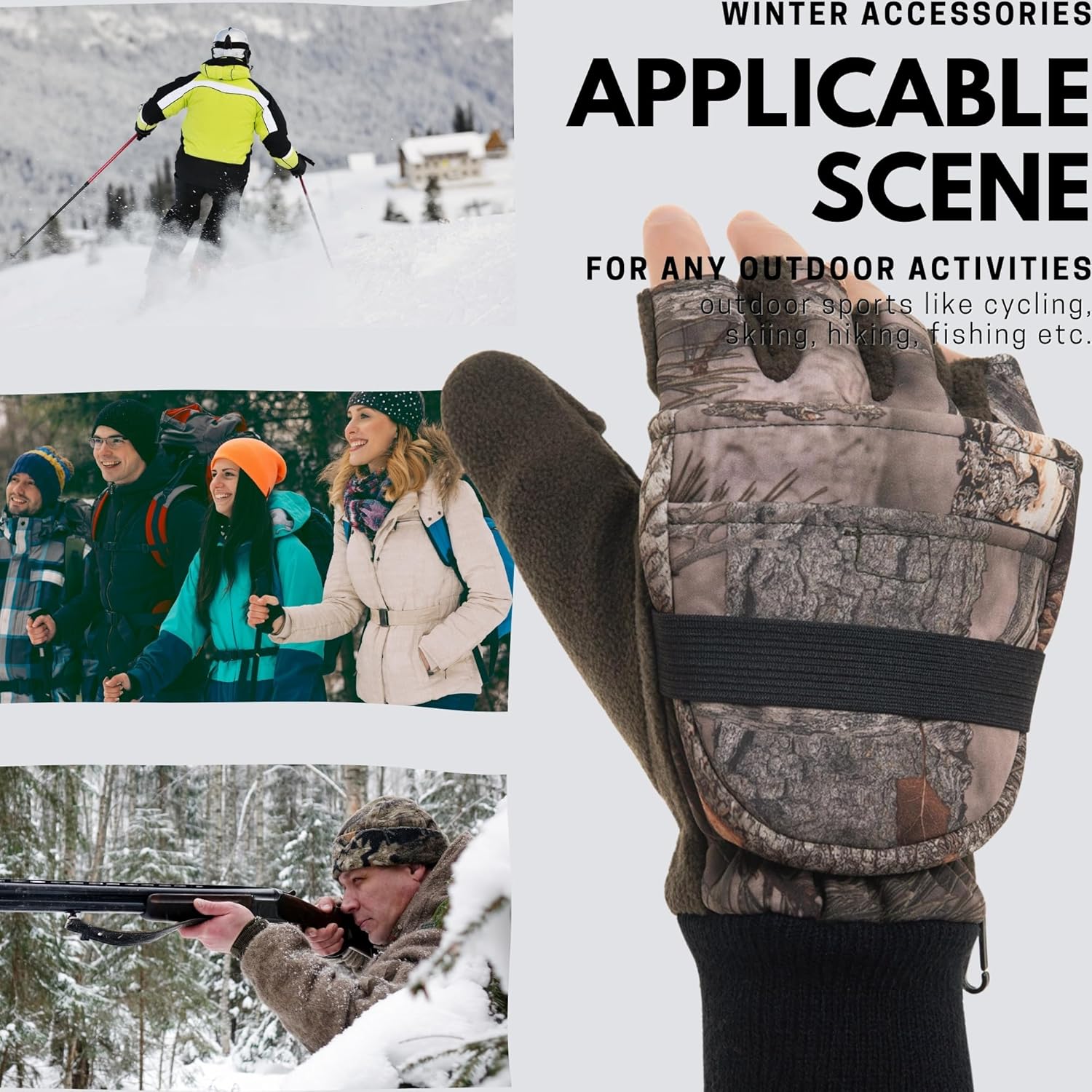 Mens Fleece Mitten Gloves Thermal Convertible Mitten w/ Flip Thumb Cold Weather Half Finger Gloves for Hunting Hiking Outdoors