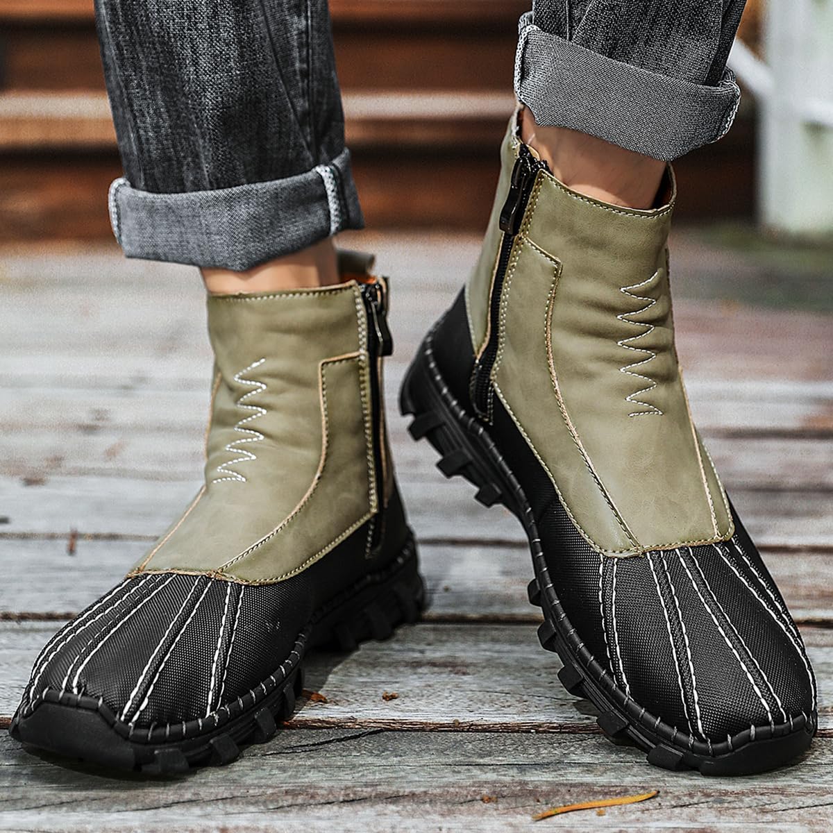 Men’s waterproof shoes and casual boots step into rugged style and comfort with these versatile boots. Lace-Up Design: Zip and the lace-up closure allows for a secure, customized fit.