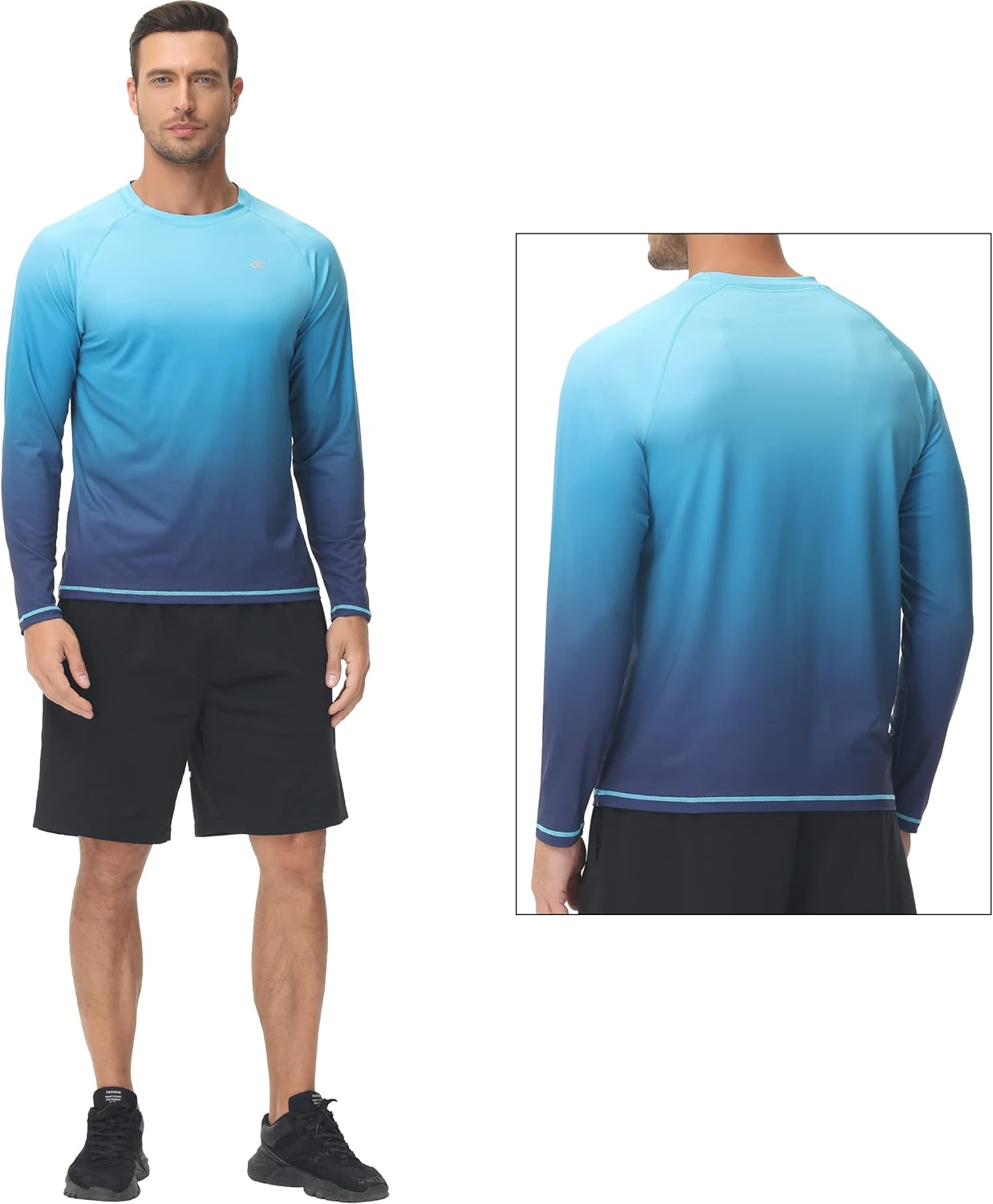 Men’s Long Sleeve Swim Shirts Rashguard UPF 50+ UV Sun Protection Shirt Athletic Workout Running Hiking T-Shirt Swimwear