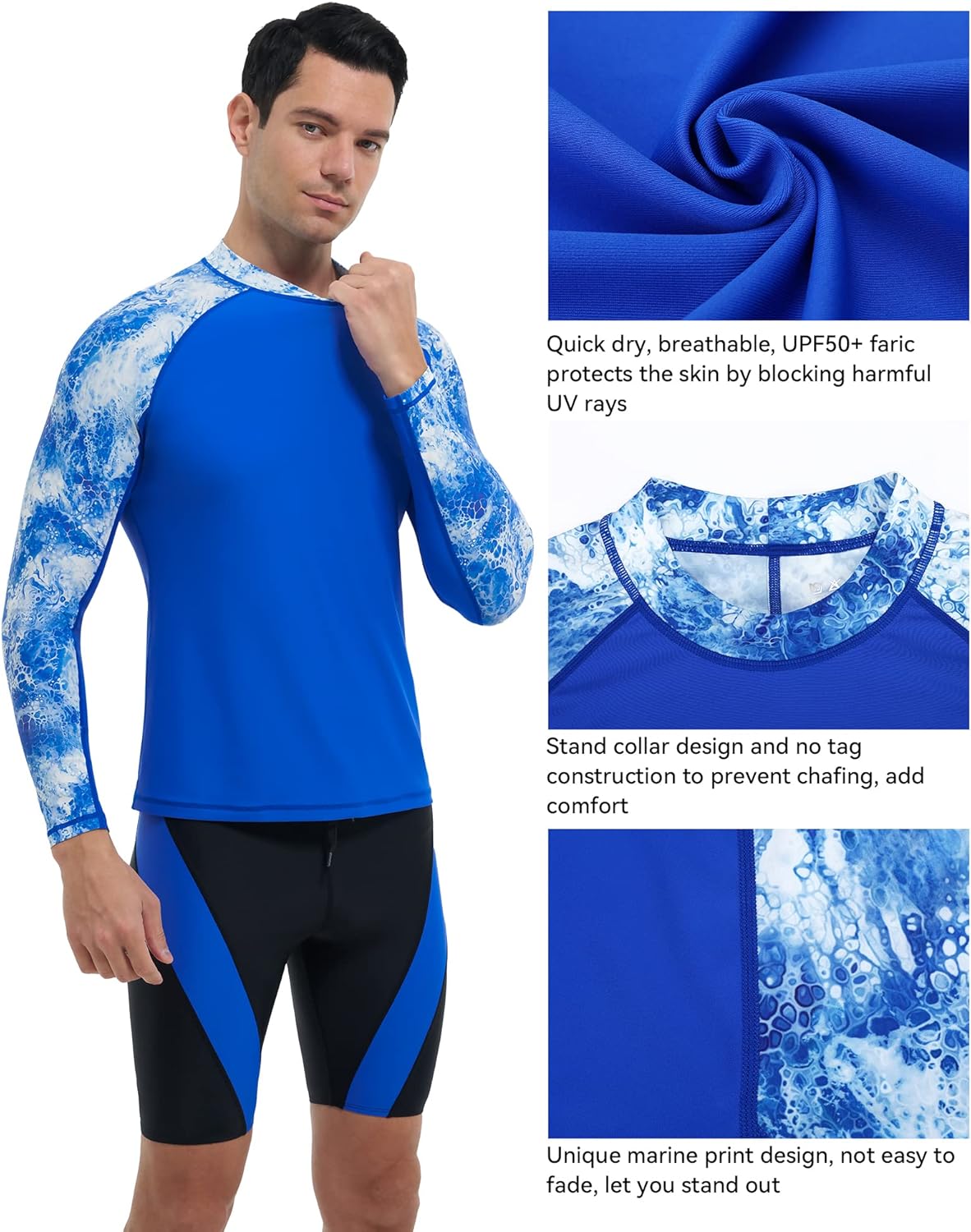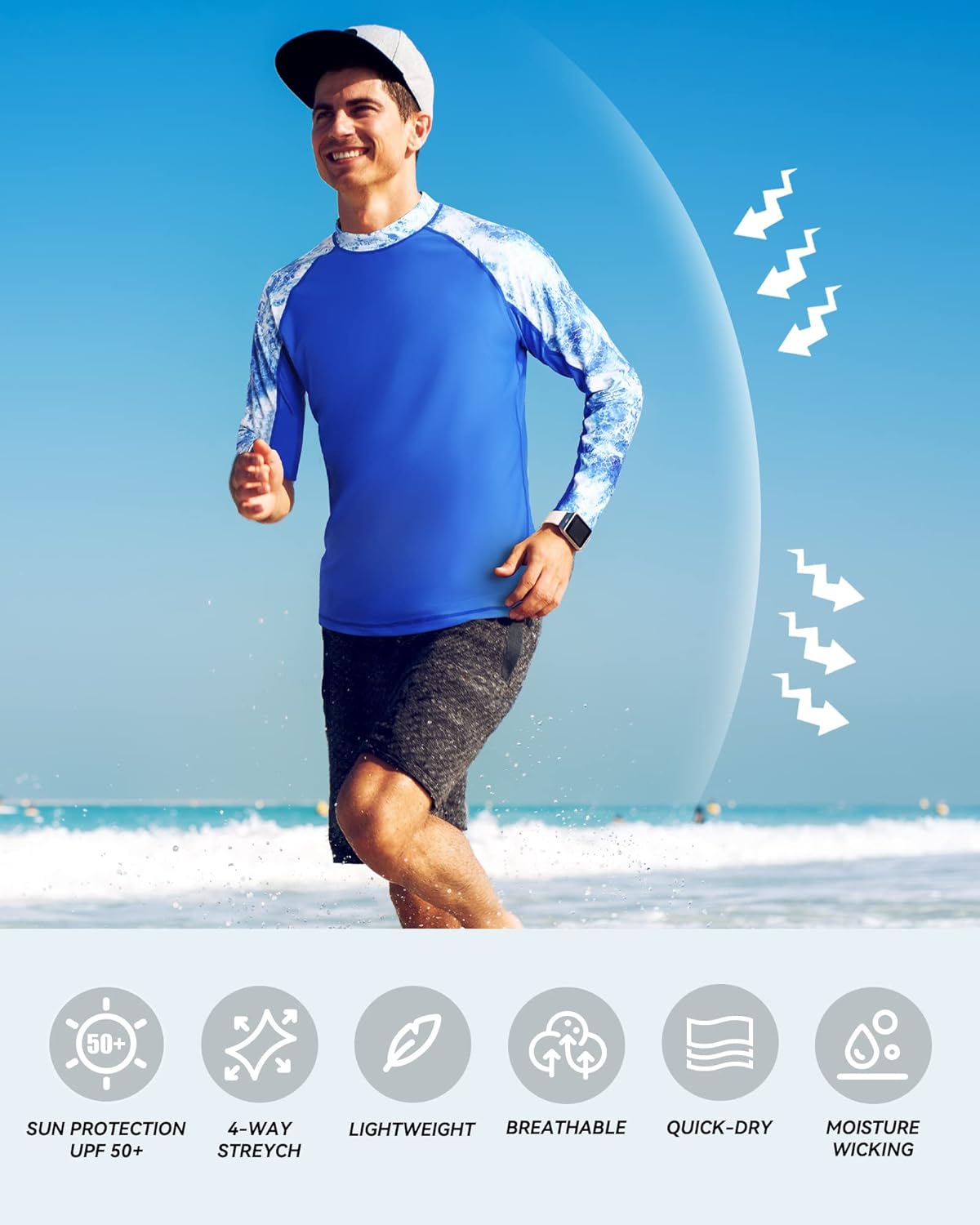 Men’s Rash Guard Shirts, UPF 50+ Long Sleeve Swim Shirts for Men, UV Sun Protection Shirts for Fishing Swimming
