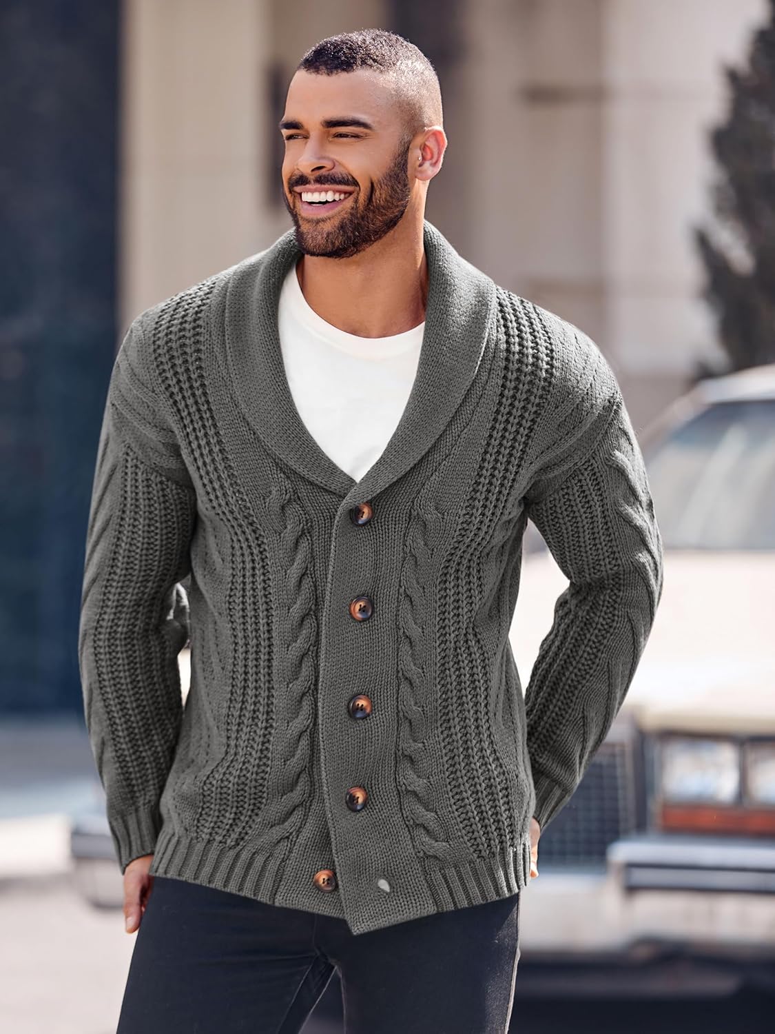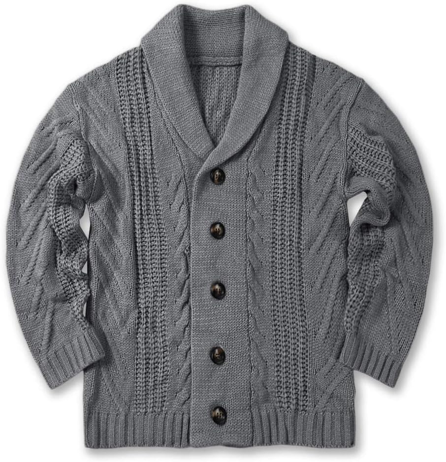 Mens Shawl Collar Cardigan Sweater Cable Knit Button Chunky Long Sleeve Winter Fisherman Casual Cardigans