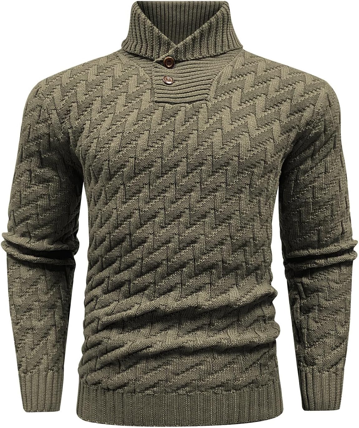 Men’s Shawl Collar Pullover Sweater Casual Cable Knit Button Sweaters Tops for Winter (S-5XL)