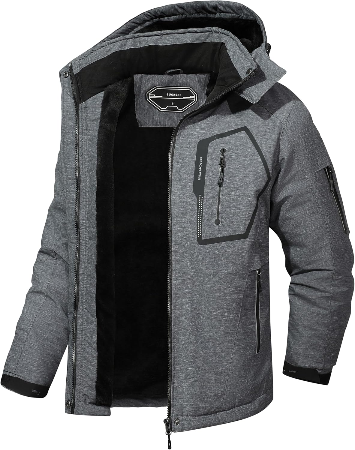 Men’s Ski Jacket Winter Warm Snow Coat Waterproof Windbreaker Hooded Work Outerwear Snowboarding Jackets