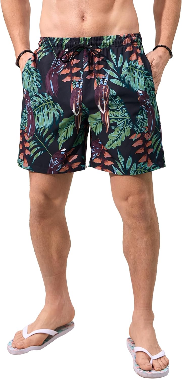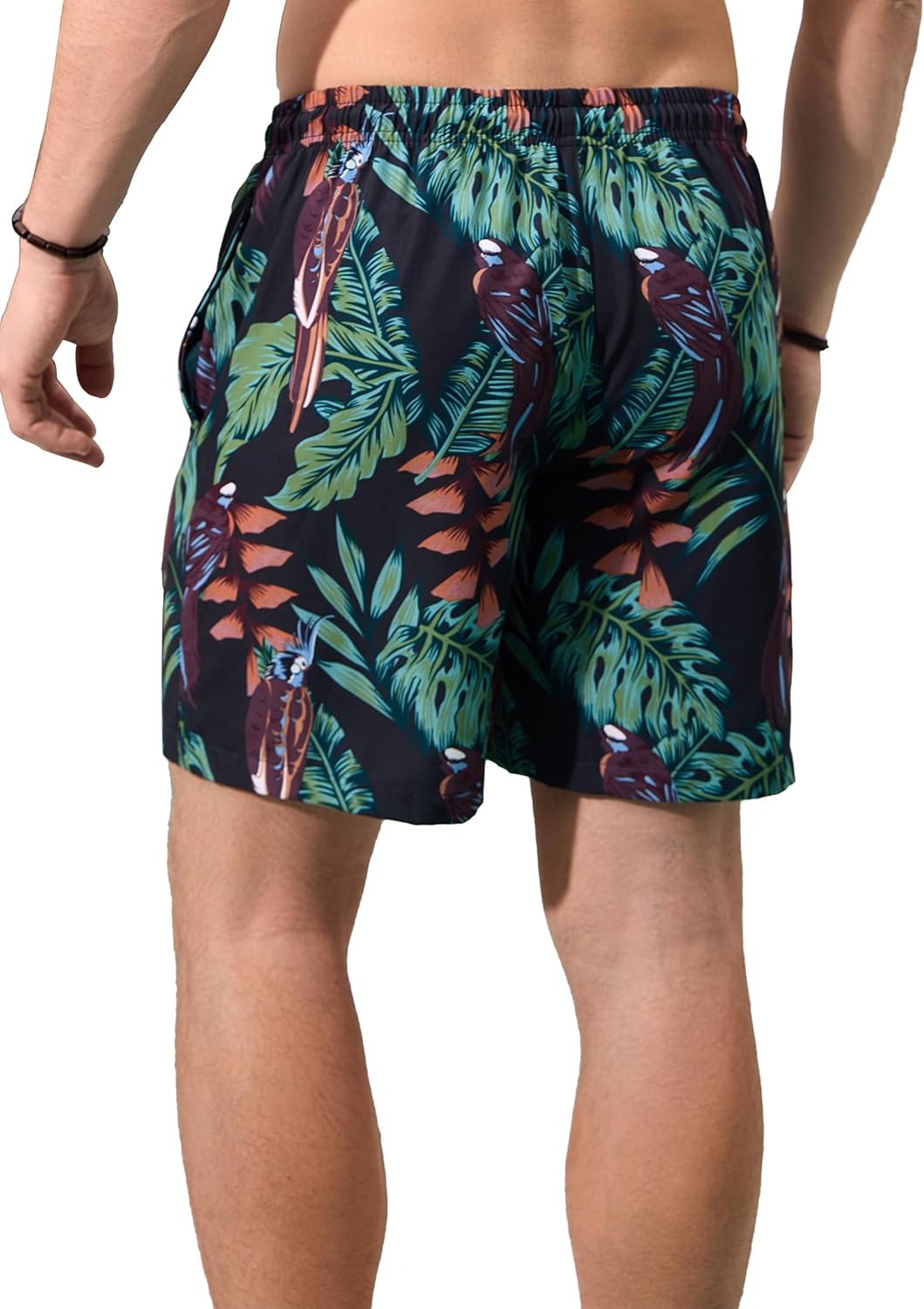 Mens Swim Trunks Quick Dry Hawaiian Swimming Beach Bathing Suit Florals Shorts with Pockets Funny Board Swimsuit Holidays