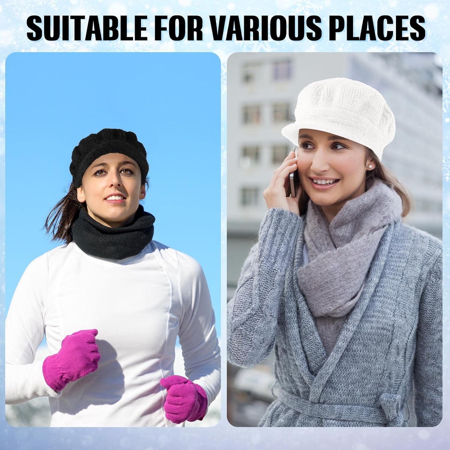 Mepase 3 Pieces Women Warm Hat for Winter Slouchy Beanie Cap with Visor Knitted Newsboy Hats for Women Ski Snow