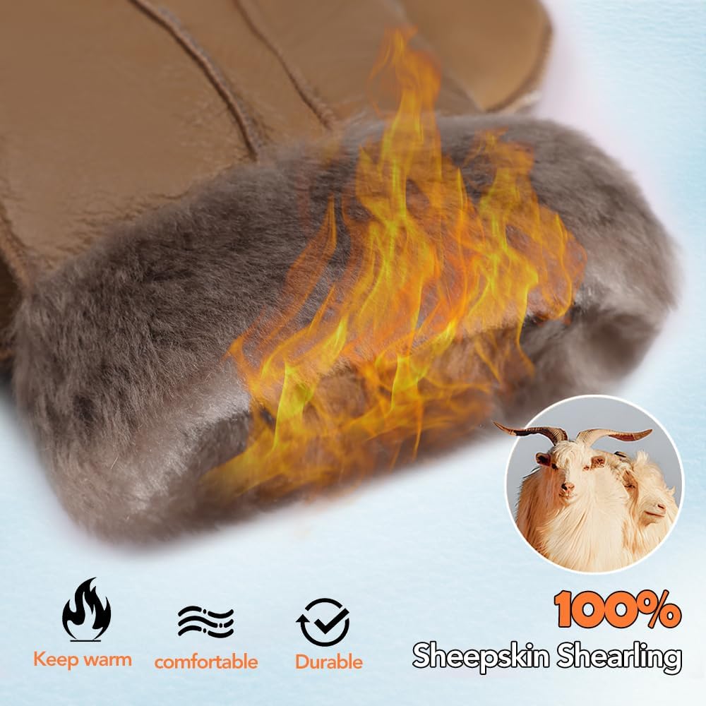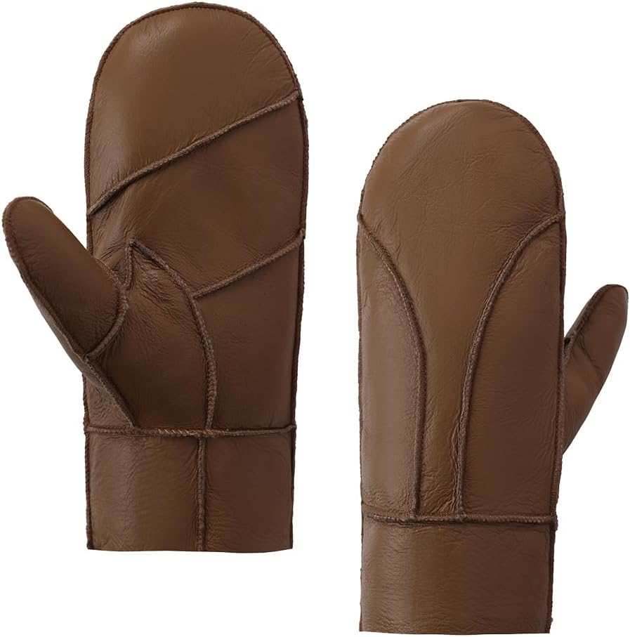 MGGMOKAY Men Warm Mittens Shearling Sheepskin Mittens For Winter Men Fur Lined Gloves