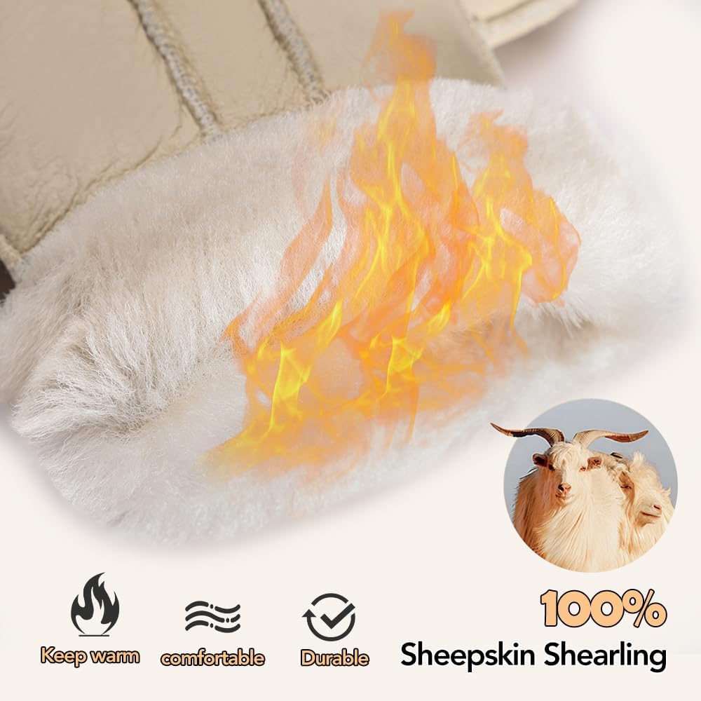 Women Leather Mittens Shearling Sheepskin Fur Lined Winter Mitten Gloves