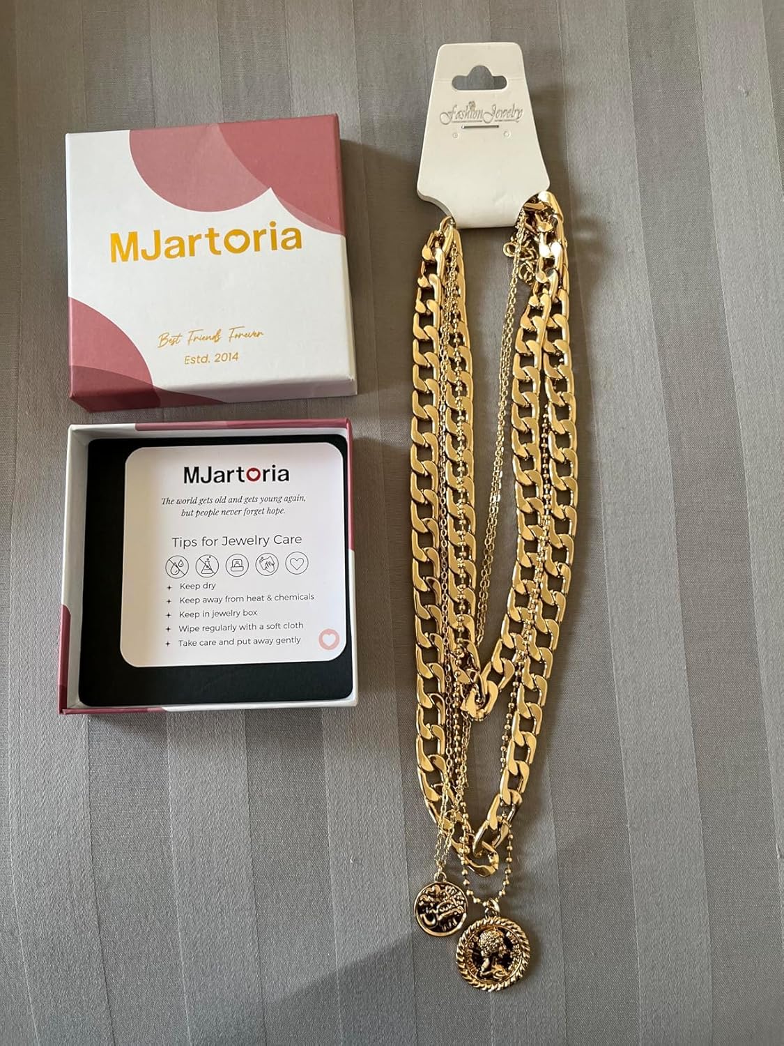 MJartoria Gold Layered Necklaces for Women Trendy Retro Coin Pendant Necklace Dainty Chunky Chain Choker Necklaces for Jewelry Birthday Gifts