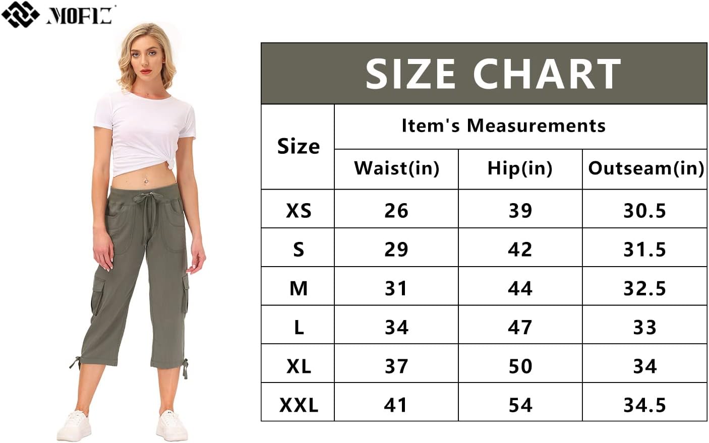 MoFiz Women’s Cargo Capris Hiking Pants Lightweight Quick Dry Outdoor Athletic Travel Casual Loose Comfy Cute Pockets