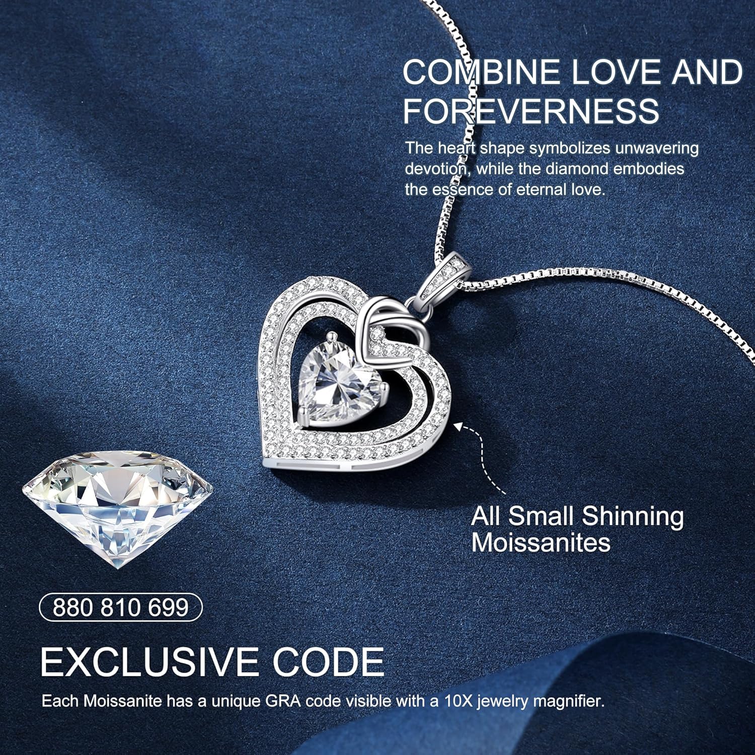 Moissanite Necklace for Women, 1-3 Carat Heart Necklace Engraved ‘I LOVE YOU’ Gift for Wife, 925 Sterling Silver Fine Jewelry, Ideal Birthday Anniversary Gift for Her Wife Girlfriend Mom Women