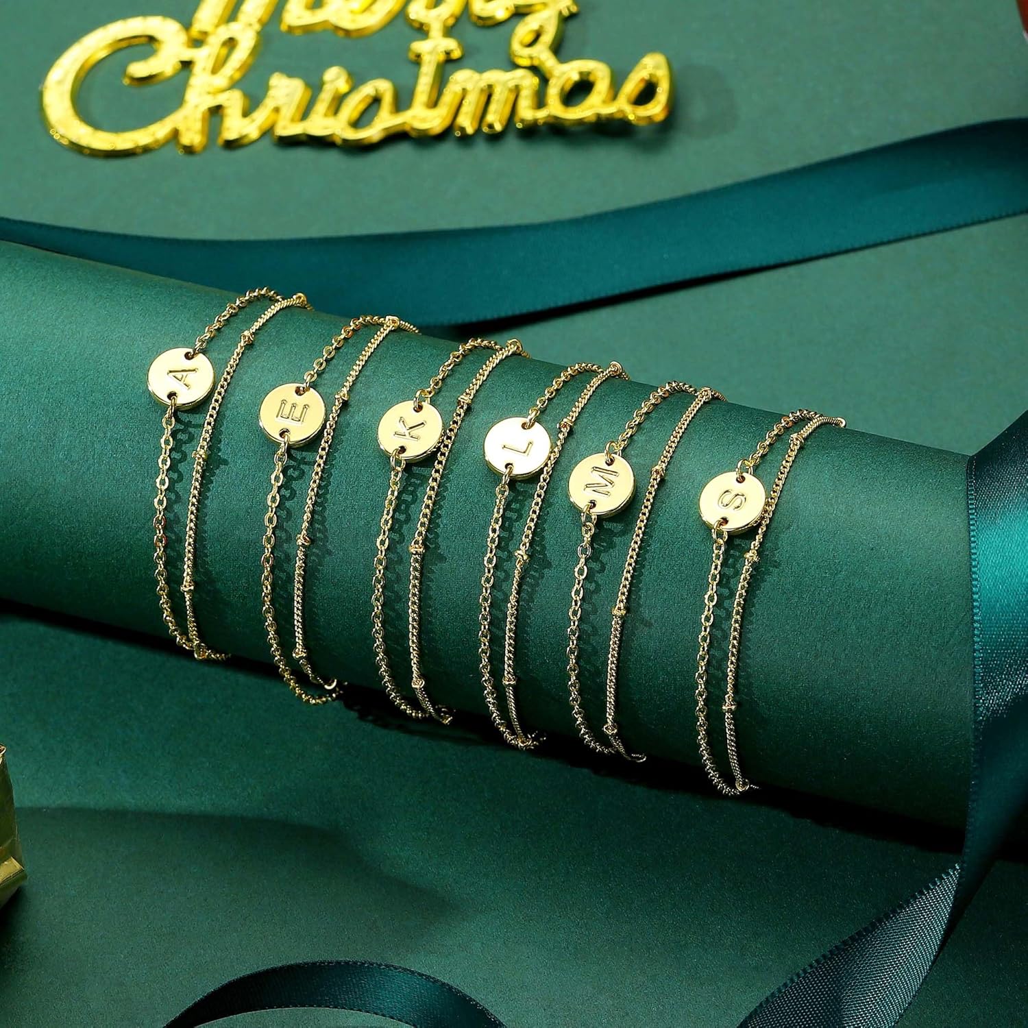 MONOZO Gold Initial Bracelets for Girls Women Christmas Gifts – Dainty Gold/Silver Plated Layered Beaded Initial Bracelet Disc Monogram Bracelet Gold Bracelets for Women Teen Girls Gifts Trendy Stuff
