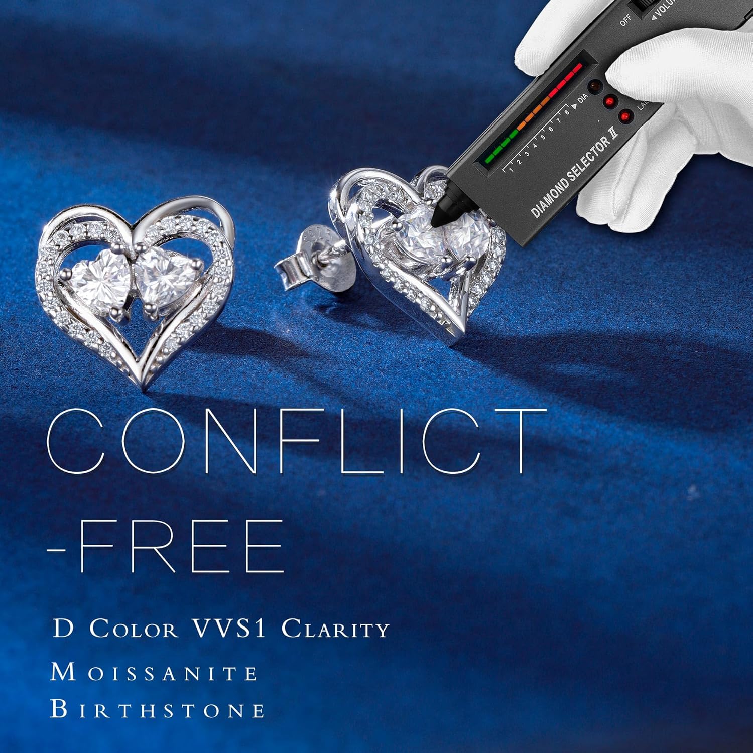 MOOSEA Moissanite Birthstone Earrings for Women – 925 Sterling Silver Heart Earring Anniversary Birthday Gifts for Women Wife Girlfriend Mom Moissanite Jewelry Gift