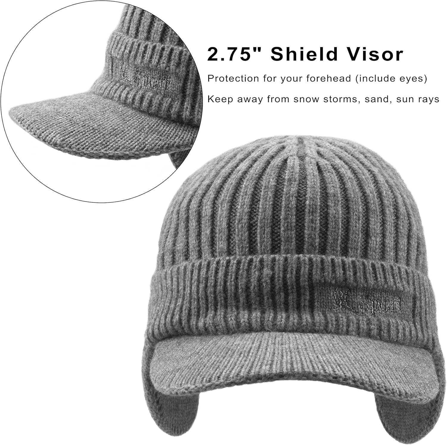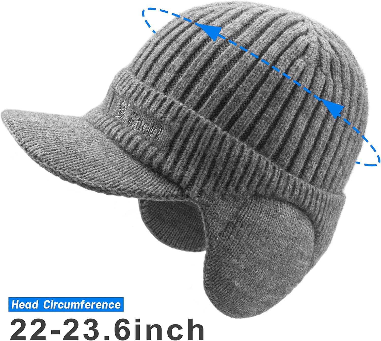Muryobao Men Winter Beanie Hat Fleece Lined Cuff Knit Hats with Visor Warm Earflaps Ski Cap