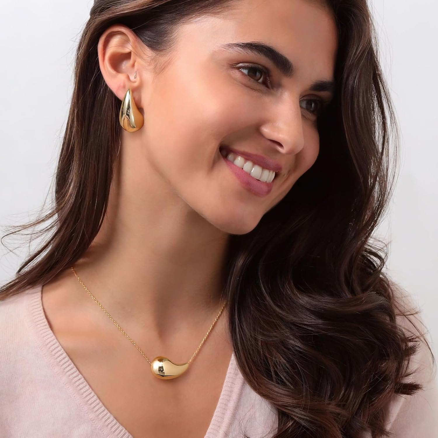 MUYAN Gold Waterdrop Pendant Necklace Earrings for Women Minimalist Simple Teardrop Chain Necklace Earrings Set Fashion Jewelry