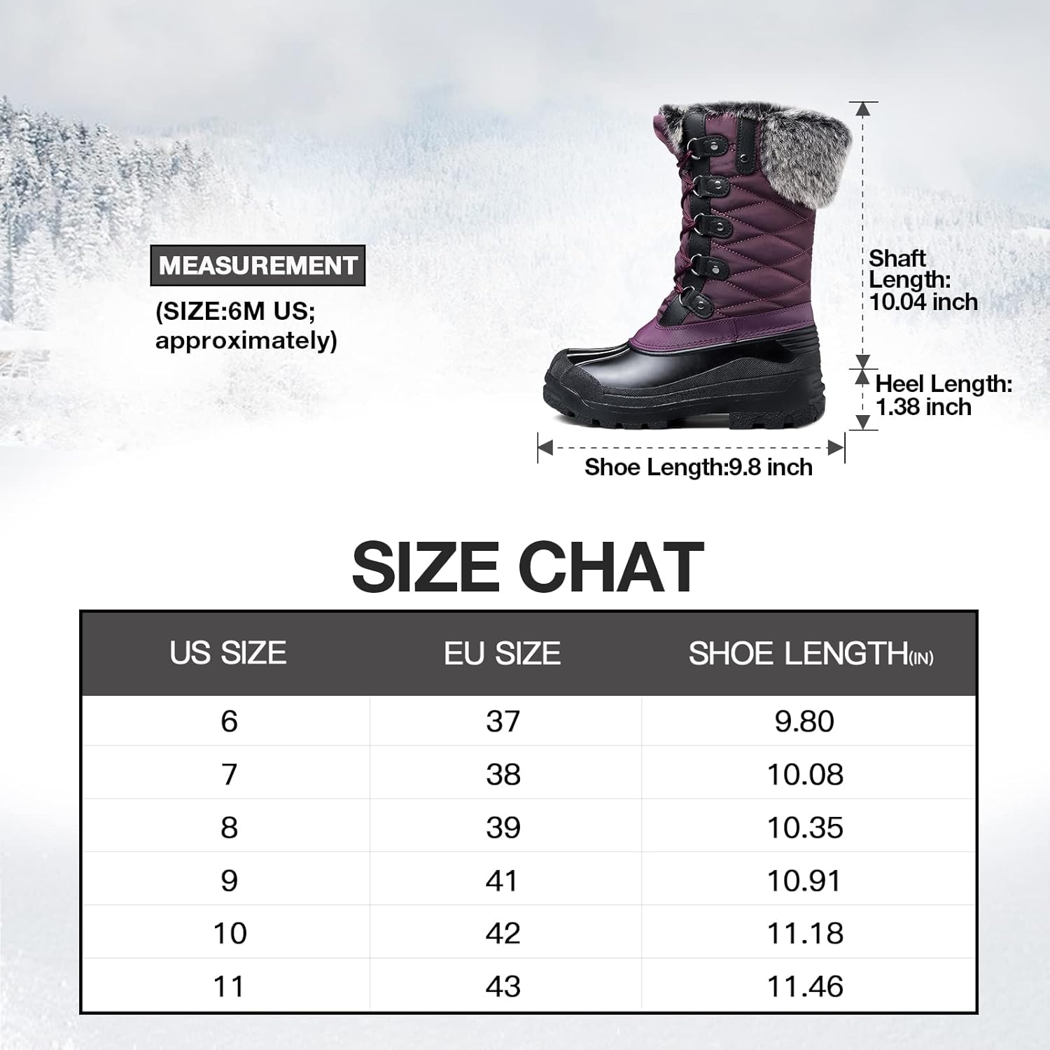 mysoft Women’s Snow Boots Warm Insulated Faux Fur Lined Waterproof Mid-Calf Winter Boots
