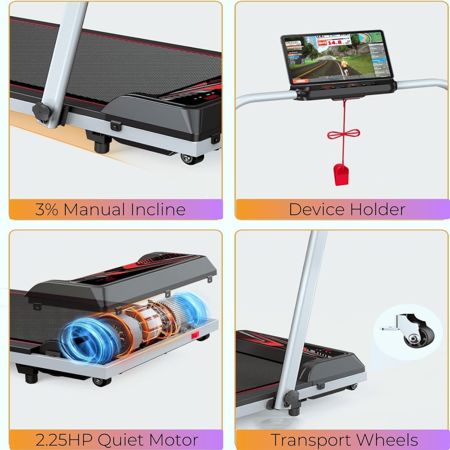 Powerful 2.25hp Motor: The treadmills for home with powerful 2.25hp motor that can support users up to 300 lbs. The treadmill also features a slight incline of 3%, which optimizes your workout by enhancing calorie burn and maximizing overall efficiency