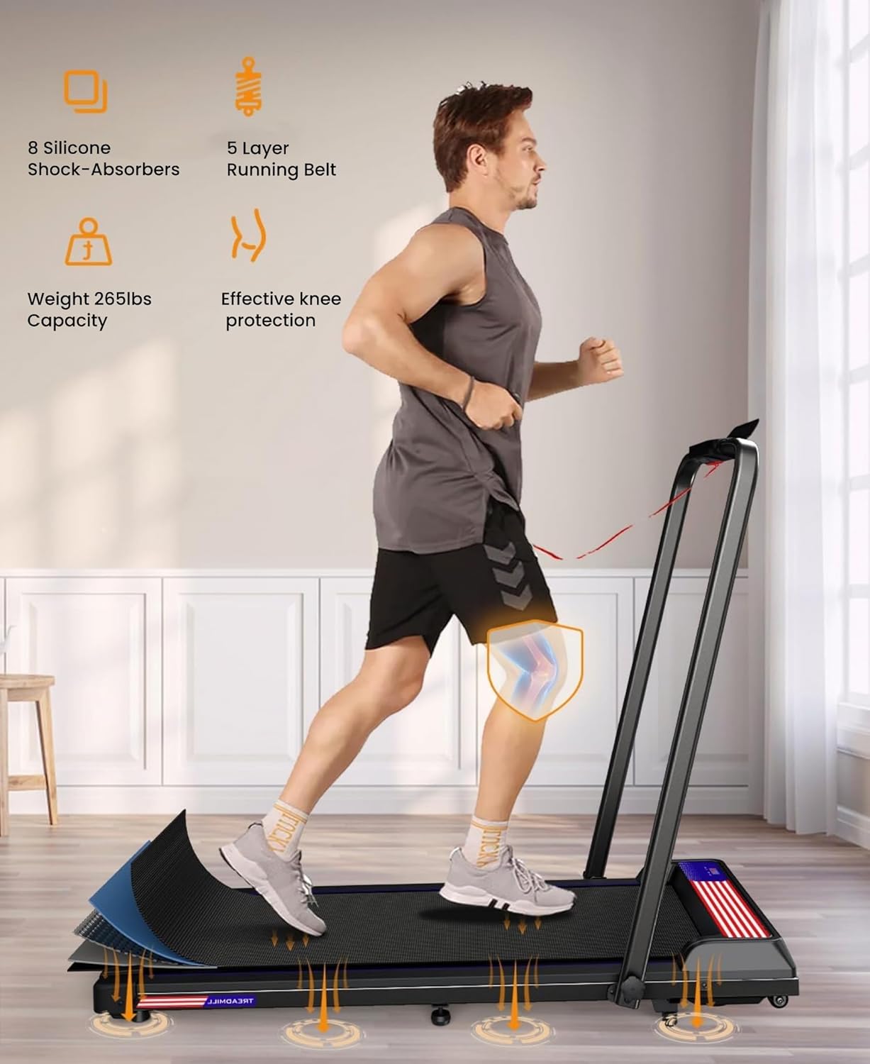 Versatile Functionality: This treadmill features two exercise modes: Walking mode with a speed range of 0.6 to 3.8 mph and running mode that goes up to 7.6 mph. this walking pad treadmill allows you to stay active