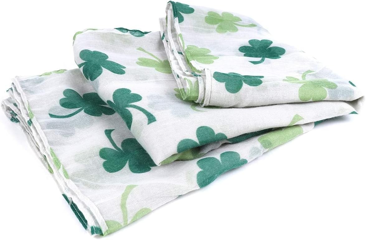 Nollia Soft Women’s Scarves for St. Patrick’s Day with Shamrocks and Clovers in Green and White – Single and 2-Pack Gift Set